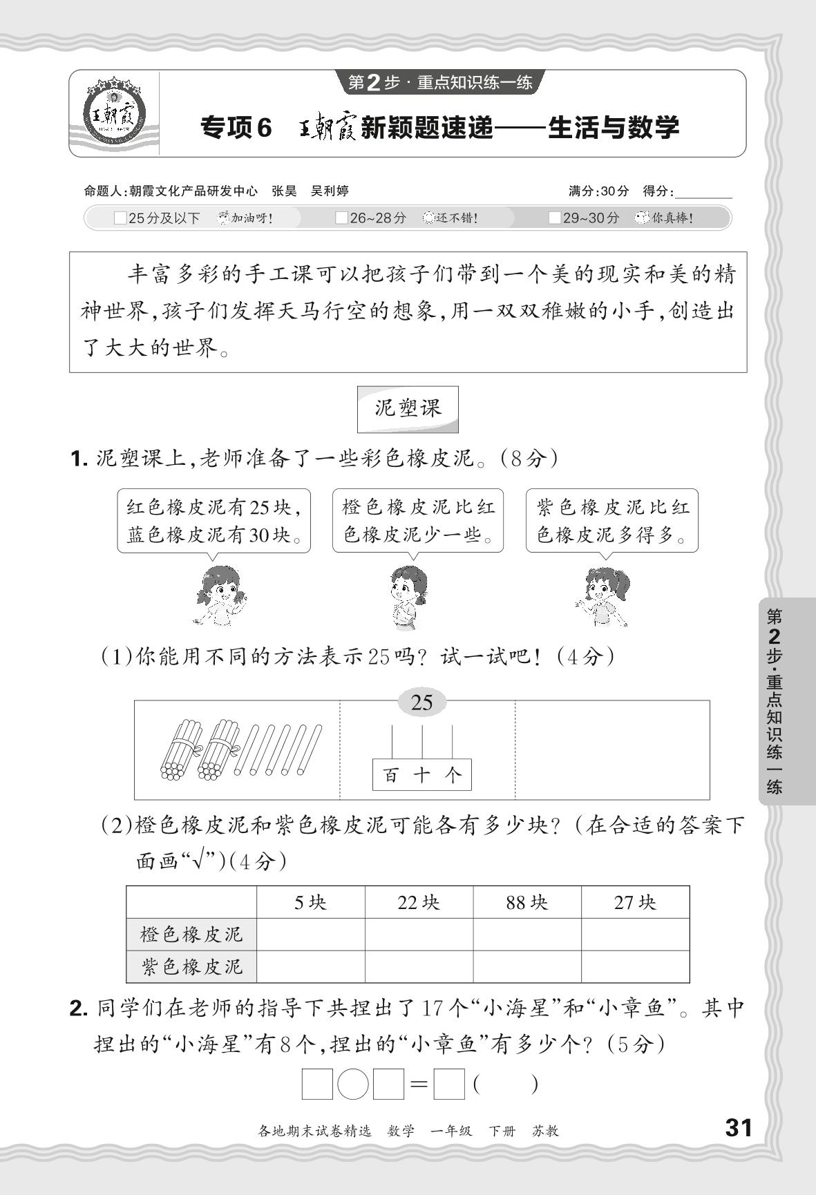 2024春下册一年级数学苏教版 期末专项卷JX版·王朝霞新颖题速递——生活与数学【6】