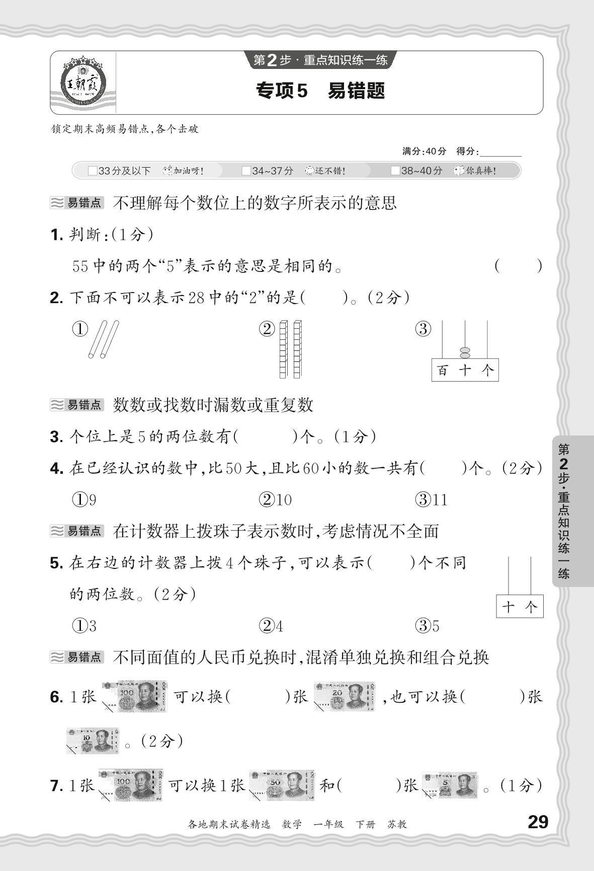 2024春下册一年级数学苏教版 期末专项卷JX版·易错题【5】