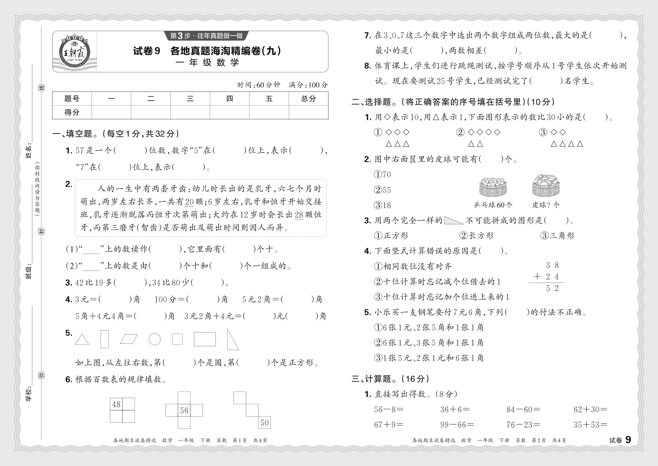 2024春下册一年级数学苏教版 各地真题海淘精编卷(九)JX