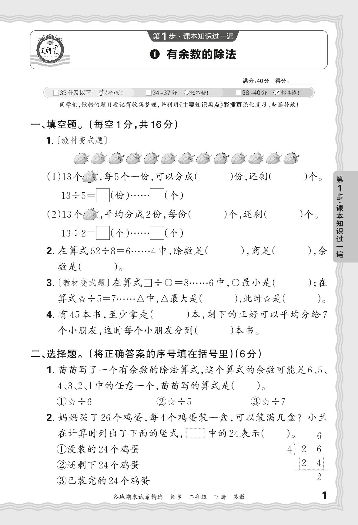 2024春下册二年级数学苏教版 期末过课本JX版·有余数的除法【1】