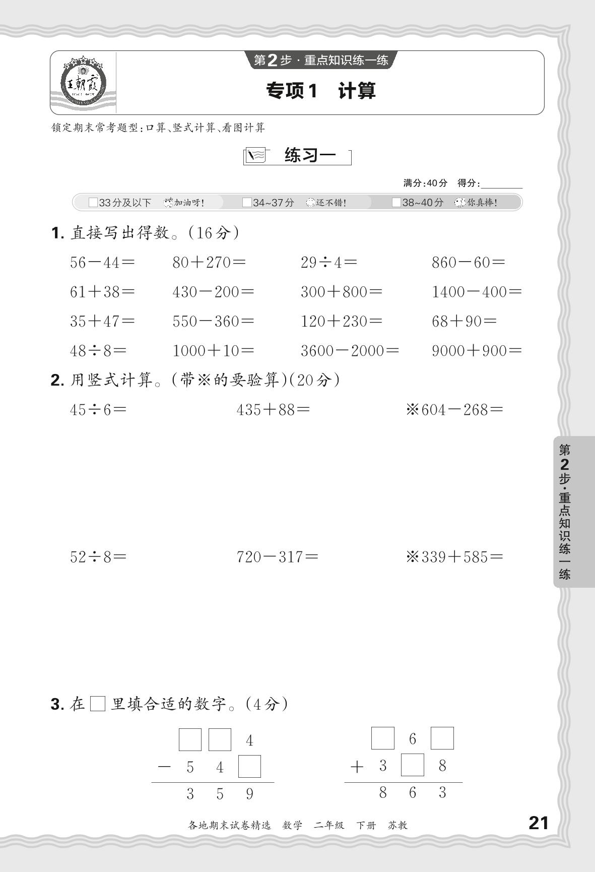 2024春下册二年级数学苏教版 期末专项卷JX版·计算【1】