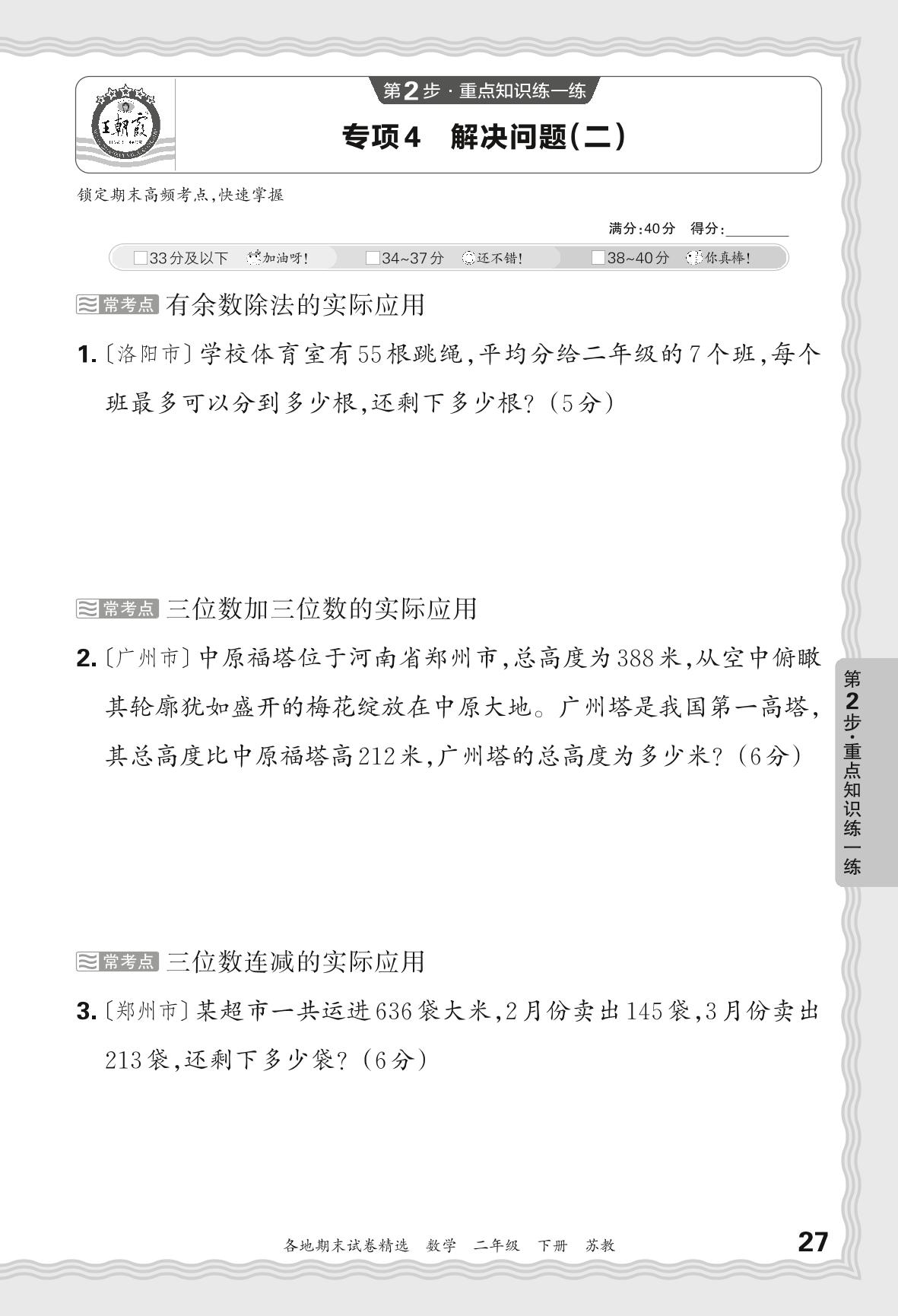 2024春下册二年级数学苏教版 期末专项卷JX版·解决问题(二)【4】