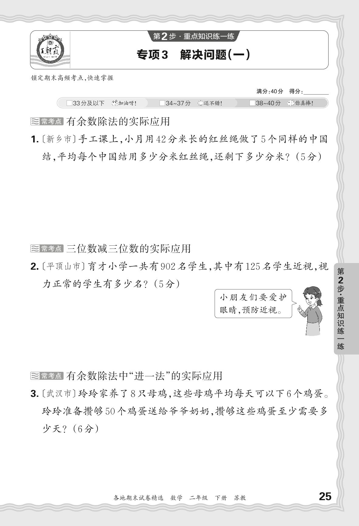 2024春下册二年级数学苏教版 期末专项卷JX版·解决问题(一)【3】