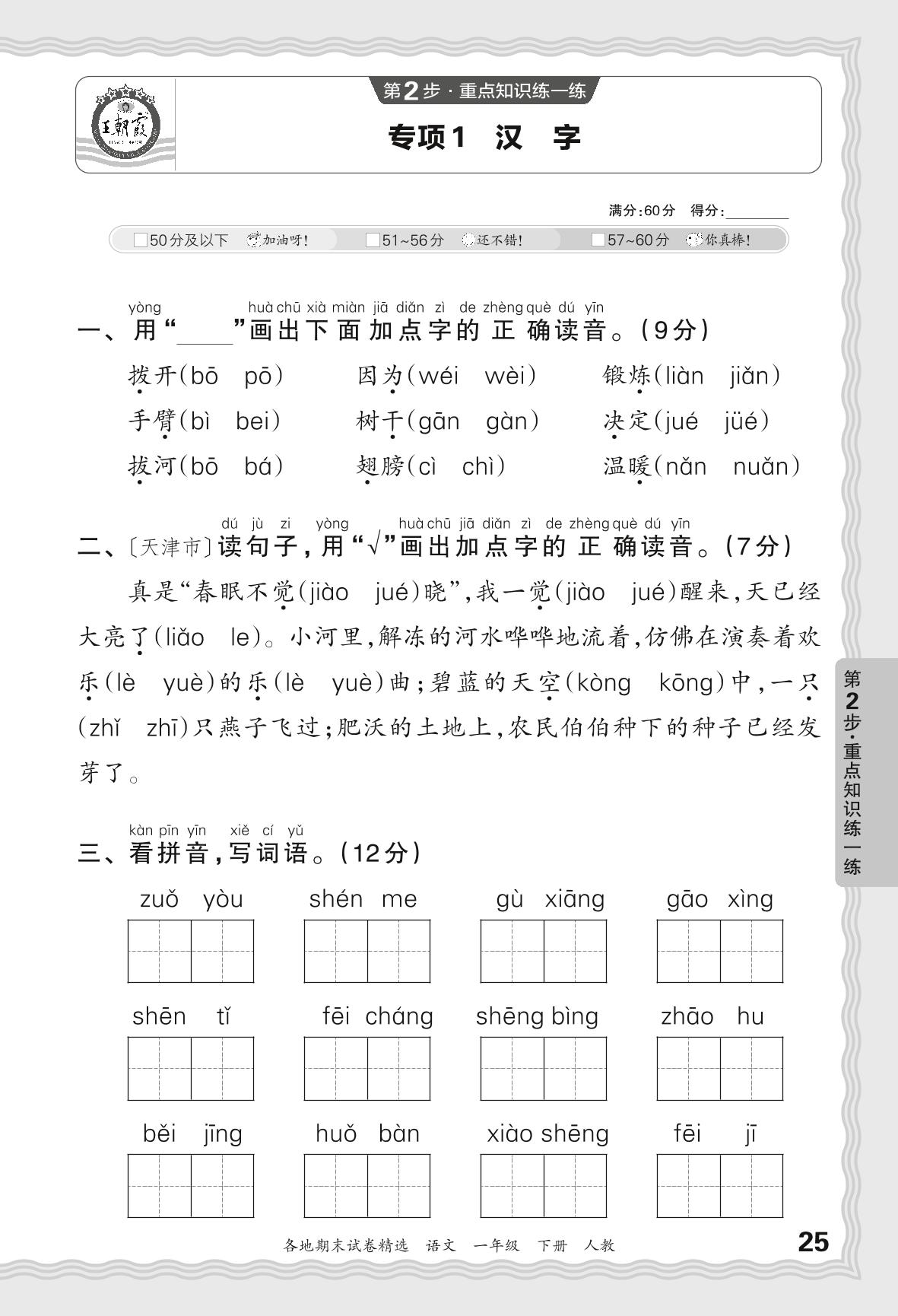 一年级语文人教版下册专项卷