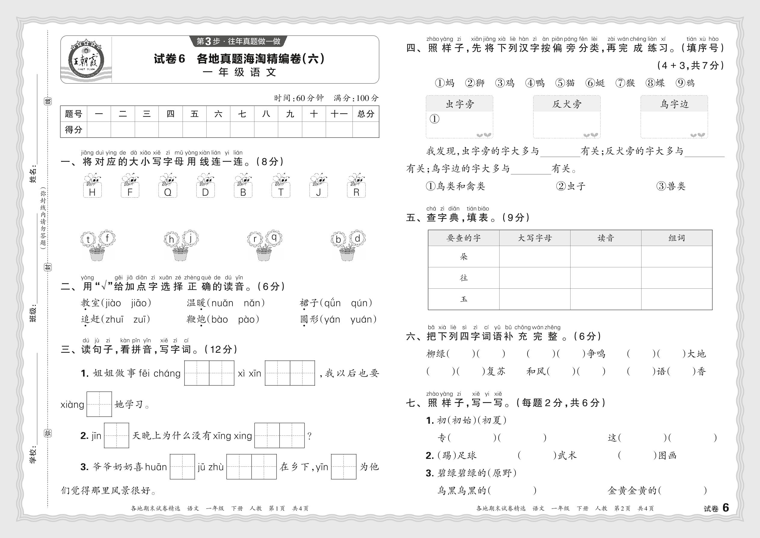2024春下册一年级语文人教版 各地真题海淘精编卷(六)JX
