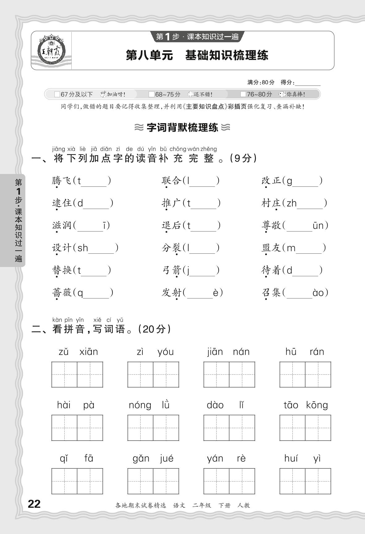 2024春下册二年级语文人教版 期末过课本JX版·第八单元 基础知识梳理练