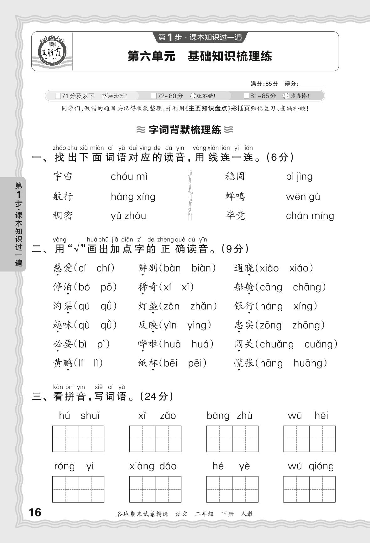 2024春下册二年级语文人教版 期末过课本JX版·第六单元 基础知识梳理练