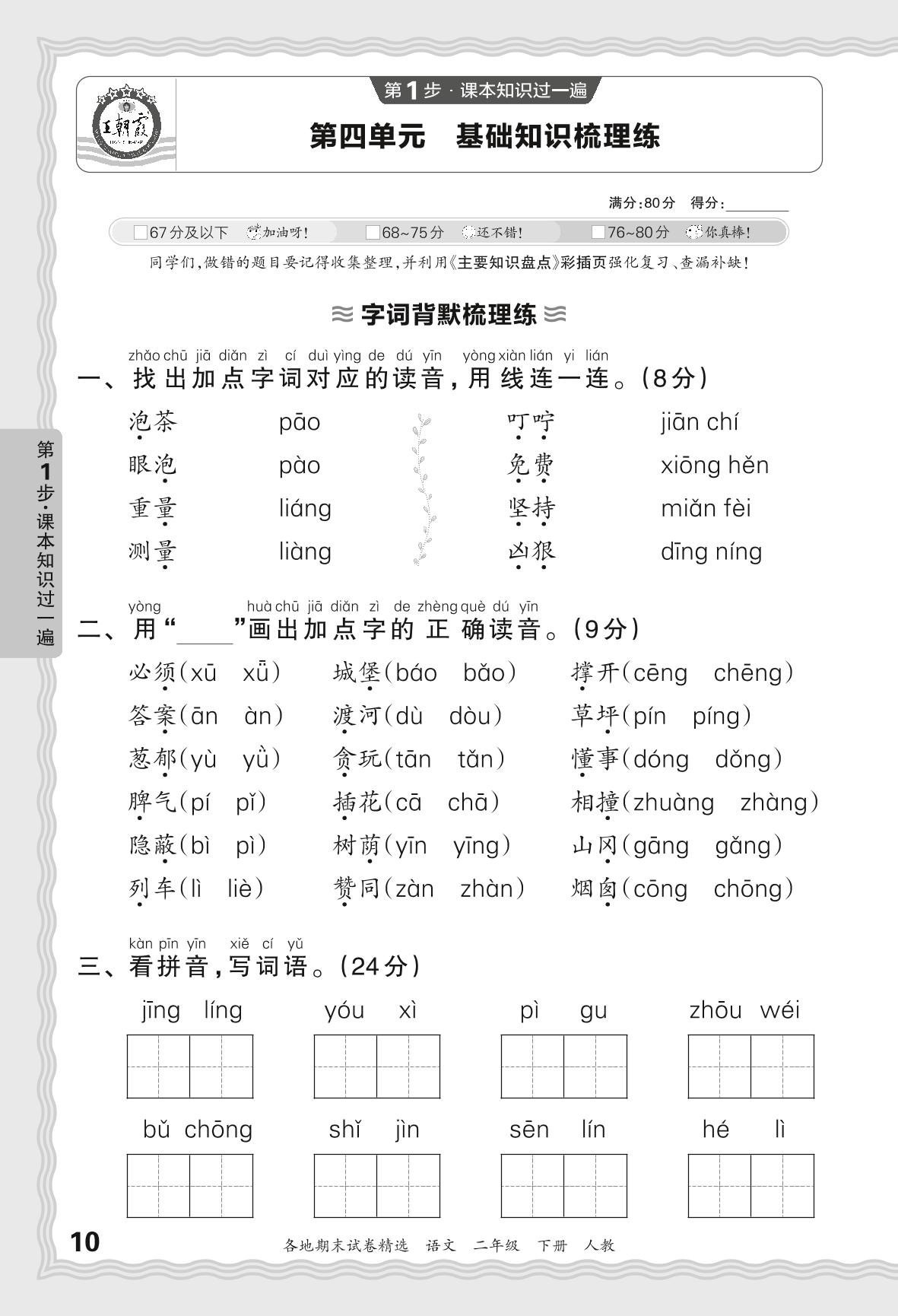 2024春下册二年级语文人教版 期末过课本JX版·第四单元 基础知识梳理练