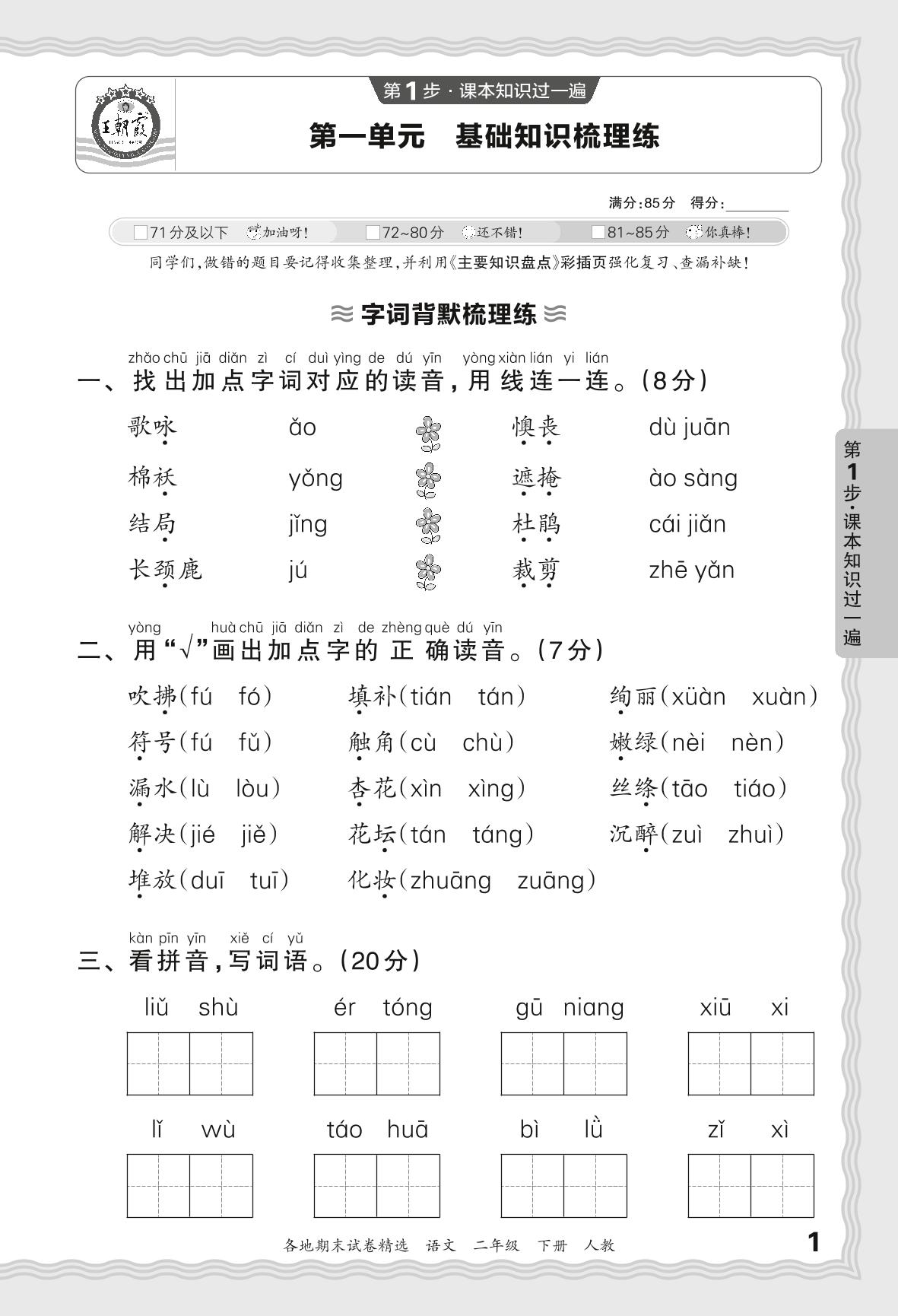 2024春下册二年级语文人教版 期末过课本JX版·第一单元 基础知识梳理练