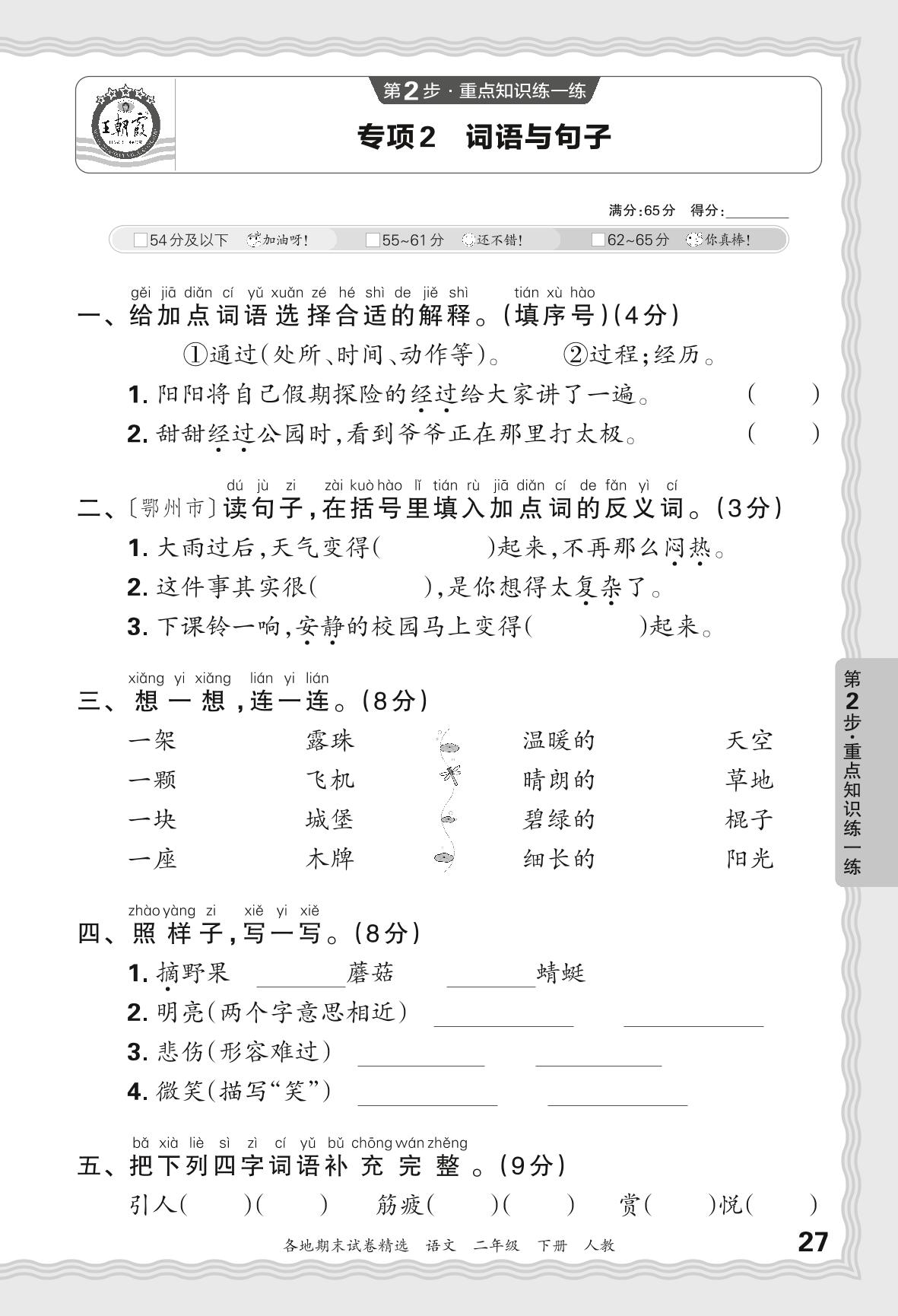 2024春下册二年级语文人教版 期末专项卷JX版·词语与句子【2】