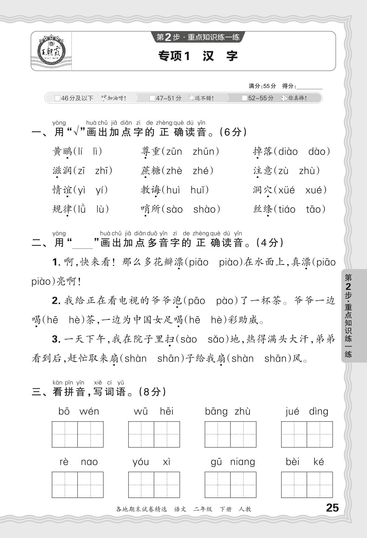 2024春下册二年级语文人教版 期末专项卷JX版·汉字【1】