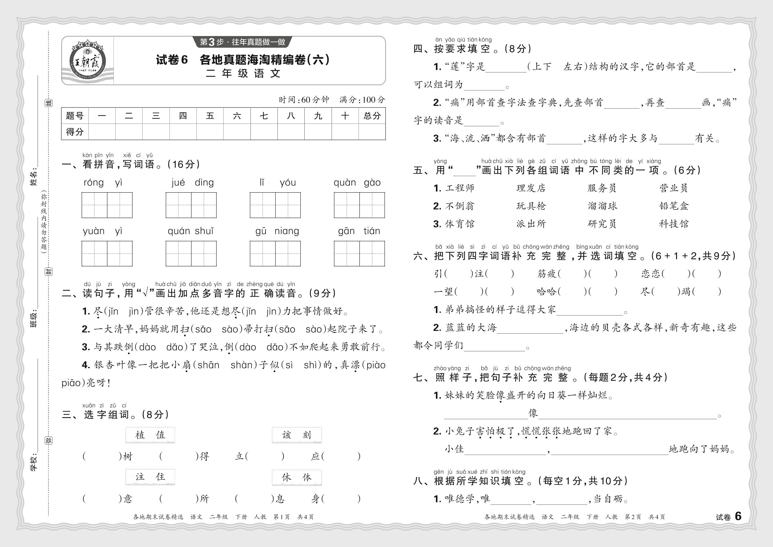 2024春下册二年级语文人教版 各地真题海淘精编卷(六)JX