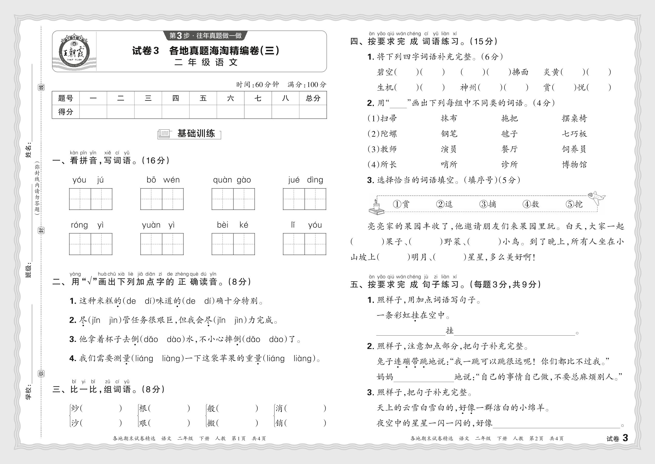 2024春下册二年级语文人教版 各地真题海淘精编卷(三)JX