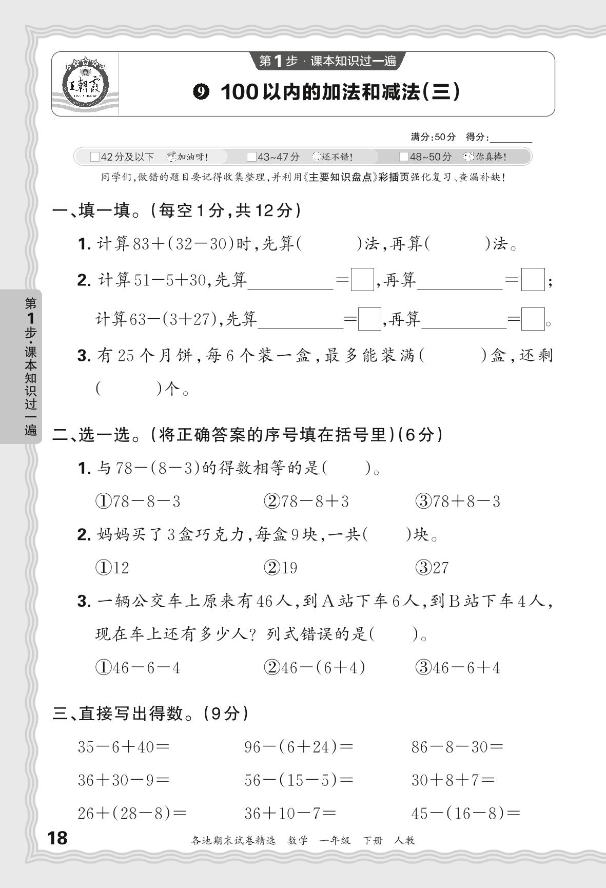 2024春下册一年级数学人教版 期末过课本JX版·100以内的加法和减法(三)【9】