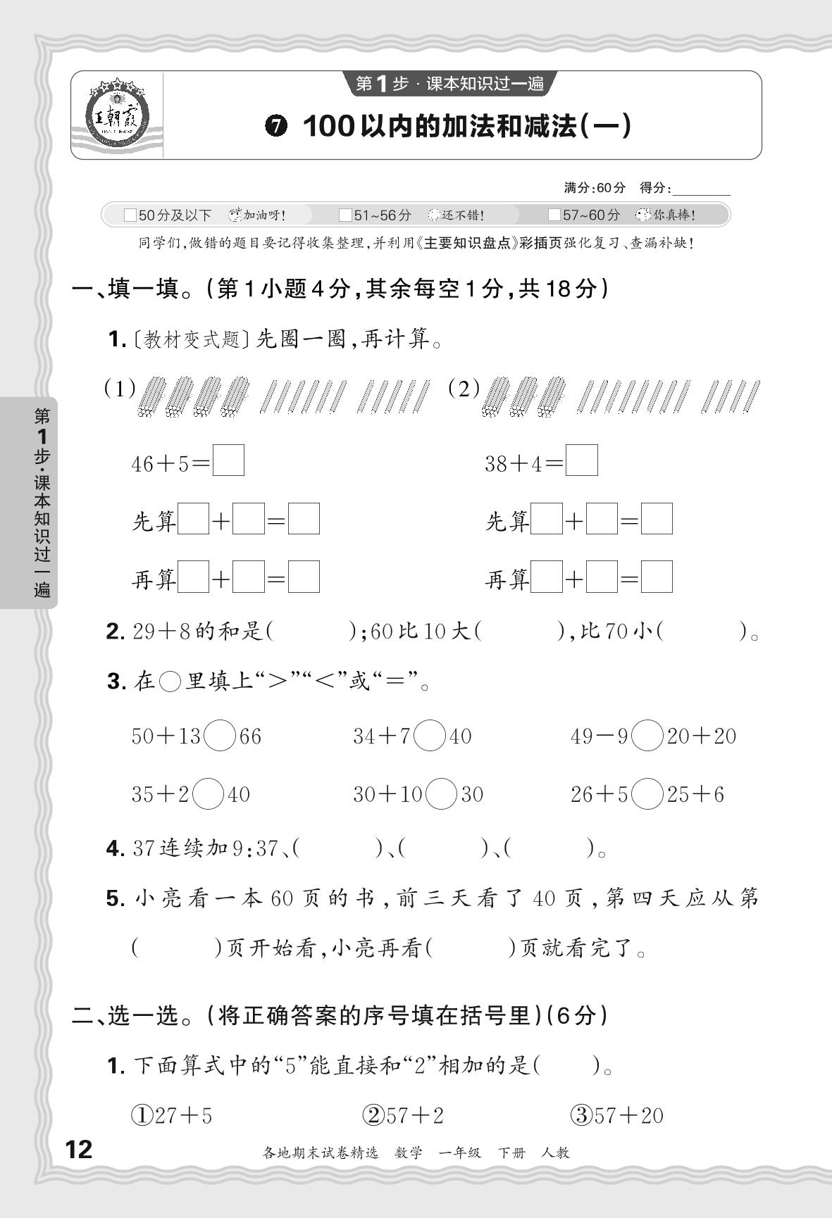 2024春下册一年级数学人教版 期末过课本JX版·100以内的加法和减法(一)【7】