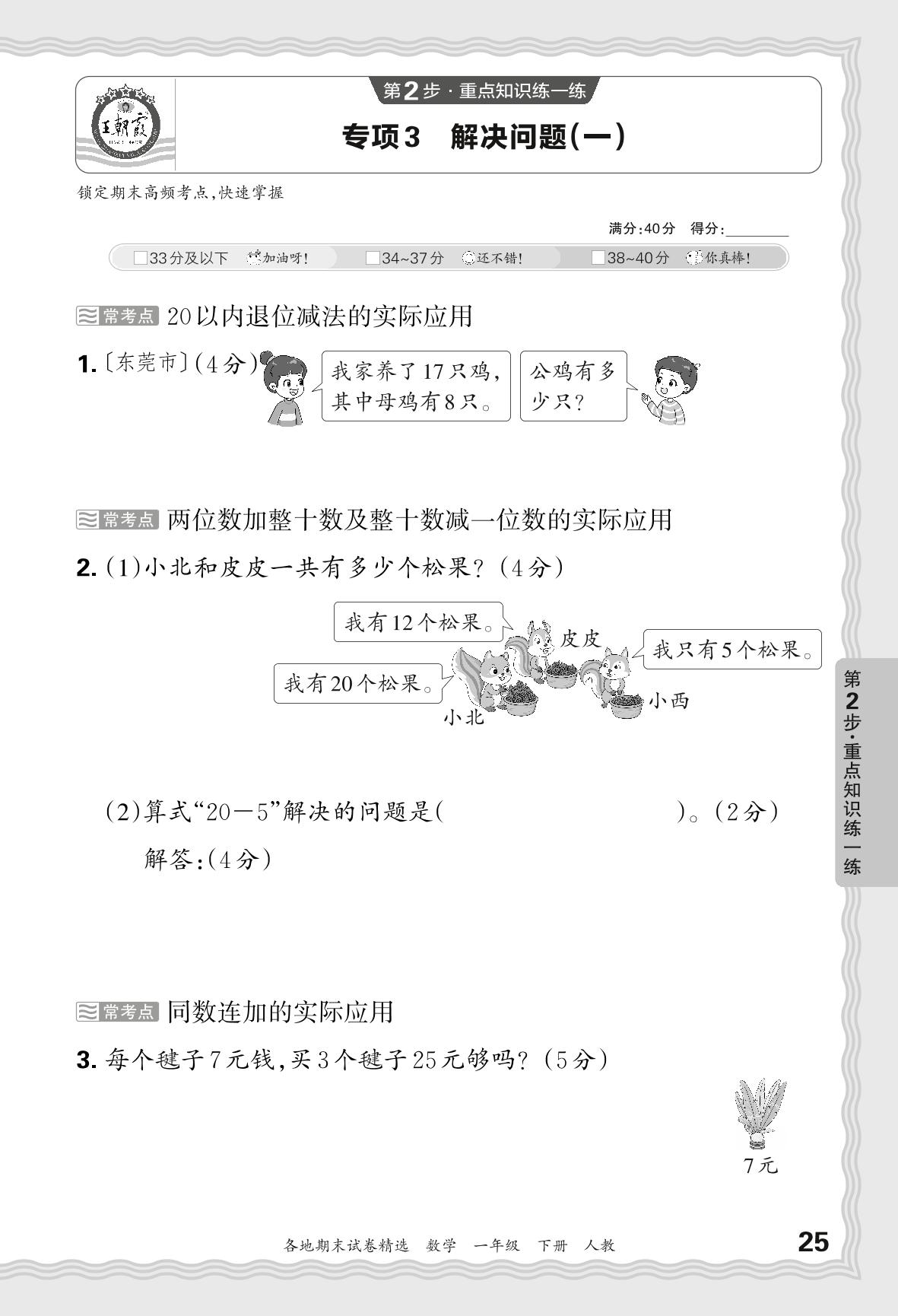 2024春下册一年级数学人教版 期末专项卷JX版·解决问题(一)【3】