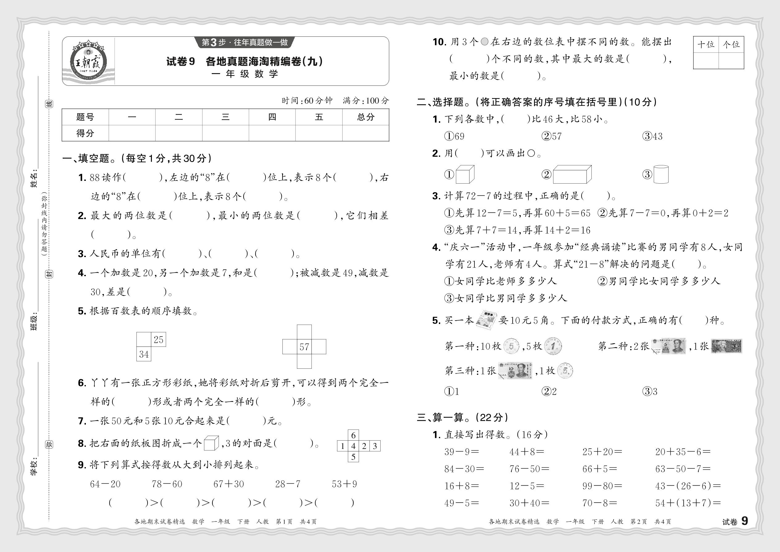 2024春下册一年级数学人教版 各地真题海淘精编卷(九)JX