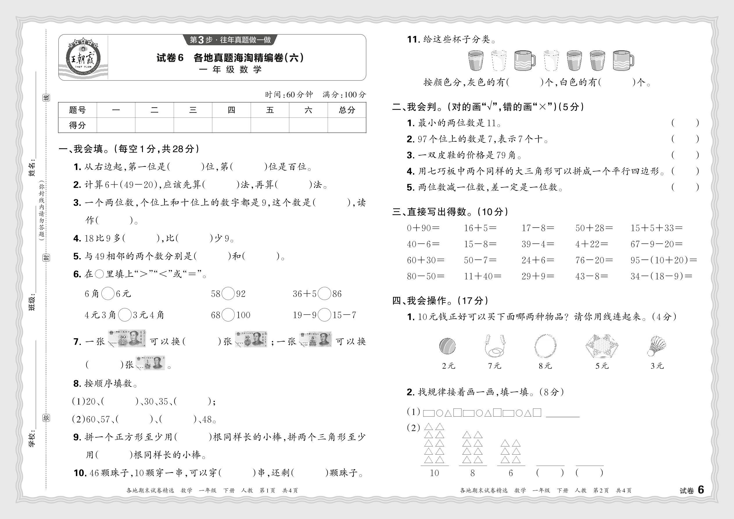 2024春下册一年级数学人教版 各地真题海淘精编卷(六)JX