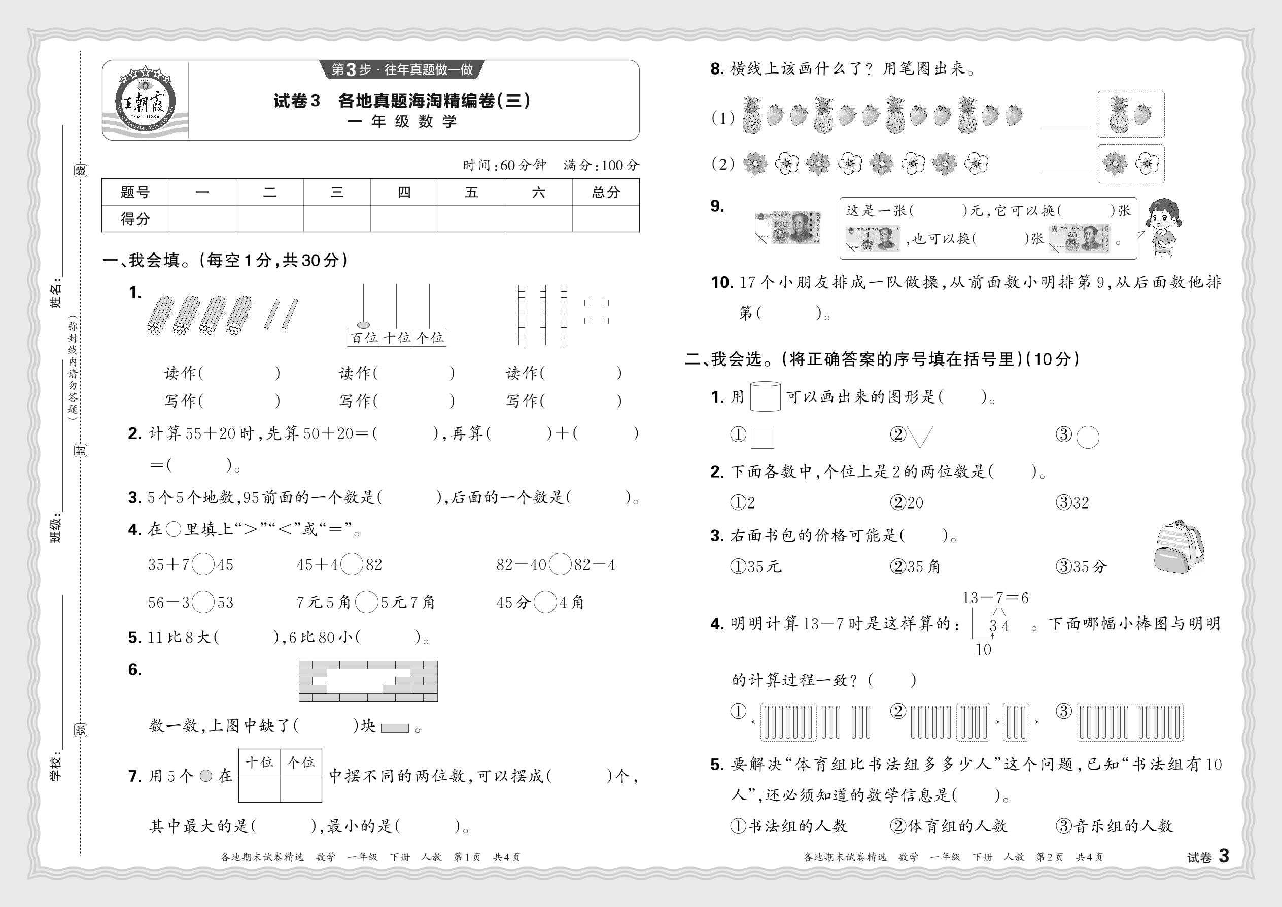 2024春下册一年级数学人教版 各地真题海淘精编卷(三)JX