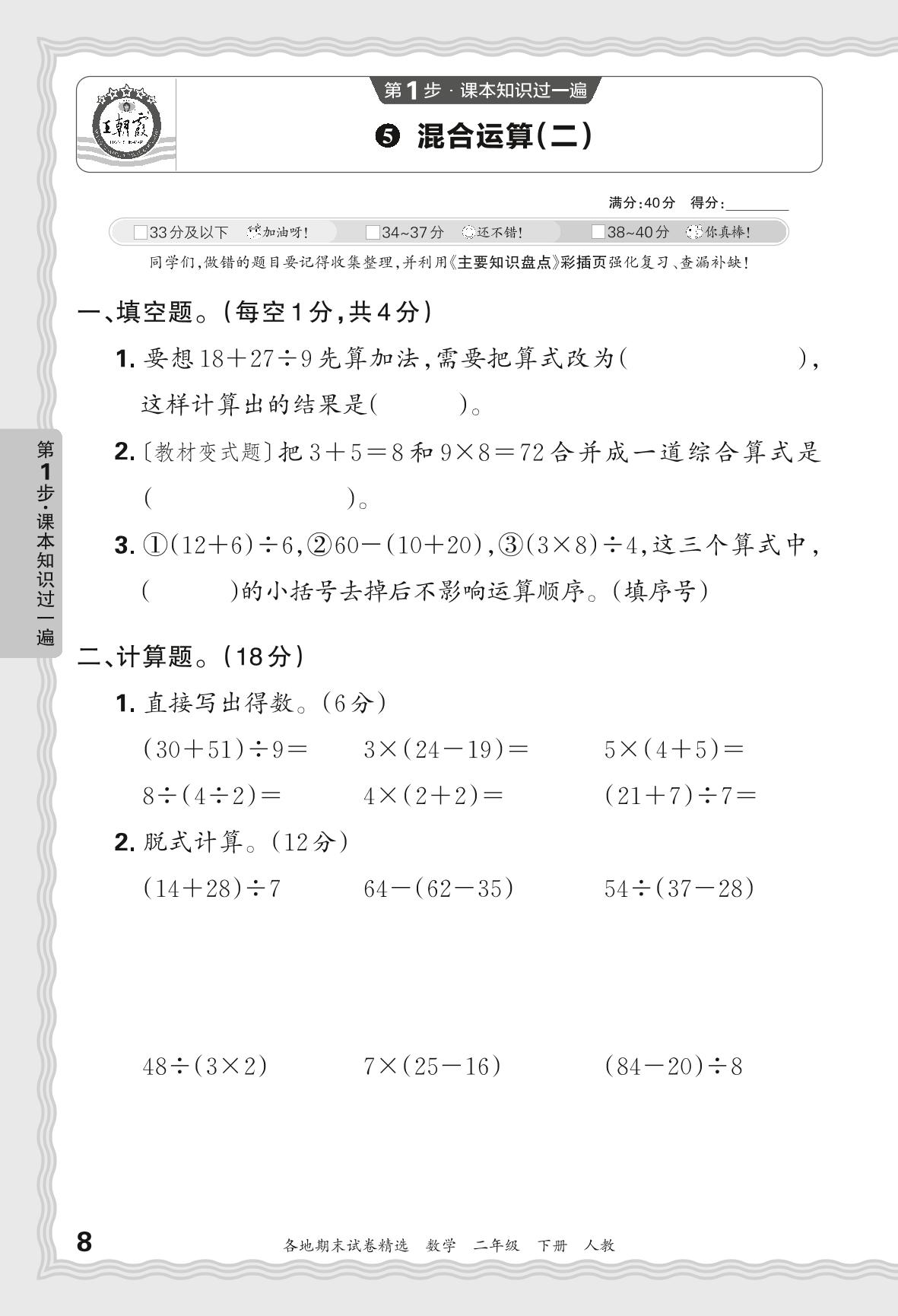 2024春下册二年级数学人教版 期末过课本JX版·混合运算(二)【5】