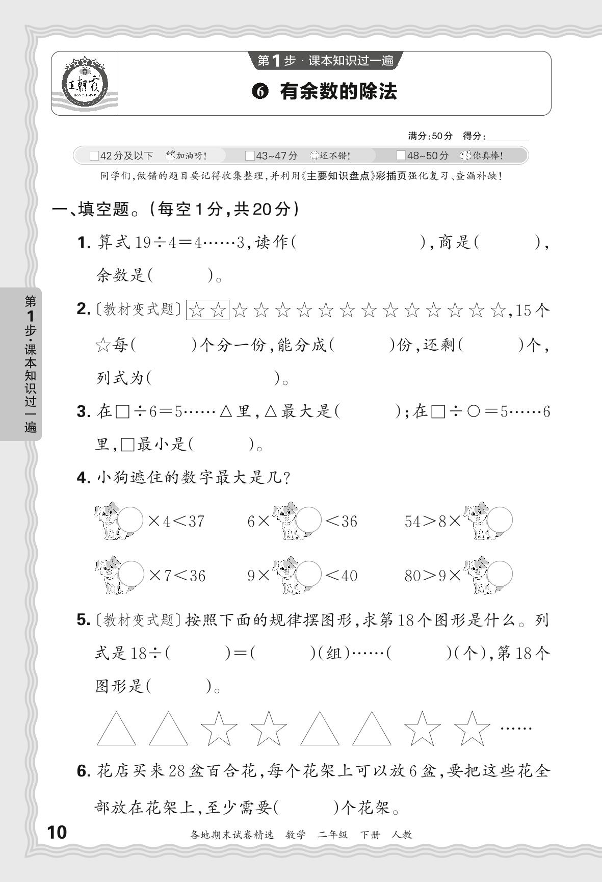 2024春下册二年级数学人教版 期末过课本JX版·有余数的除法【6】