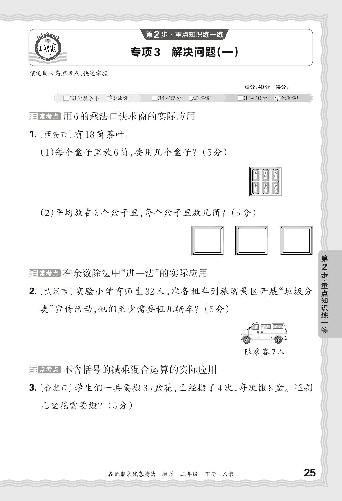 2024春下册二年级数学人教版 期末专项卷JX版·解决问题(一)【3】