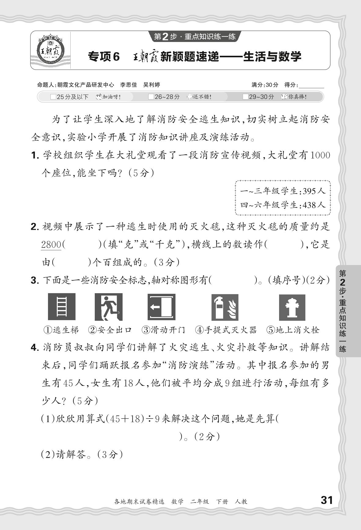 2024春下册二年级数学人教版 期末专项卷JX版·王朝霞新颖题速递——生活与数学【6】