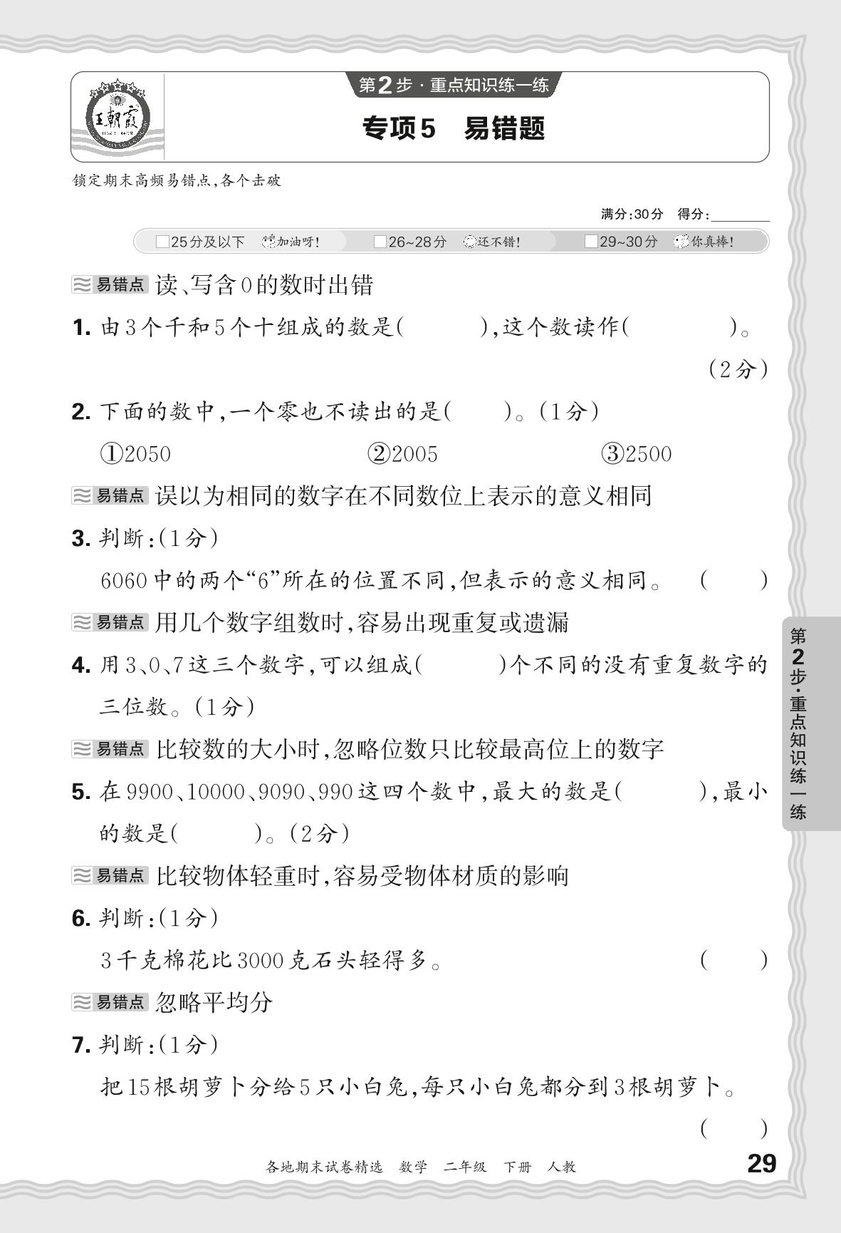2024春下册二年级数学人教版 期末专项卷JX版·易错题【5】