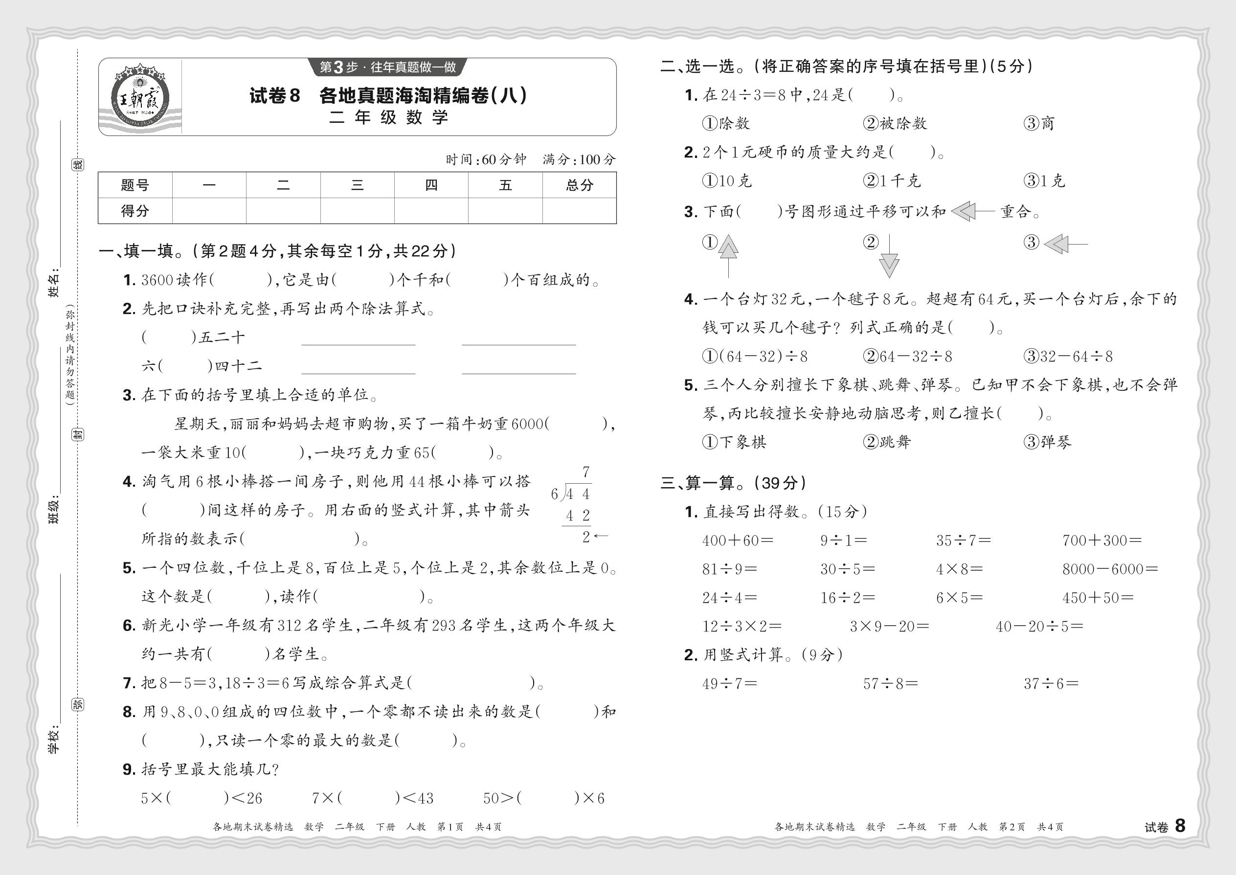 2024春下册二年级数学人教版 各地真题海淘精编卷(八)JX