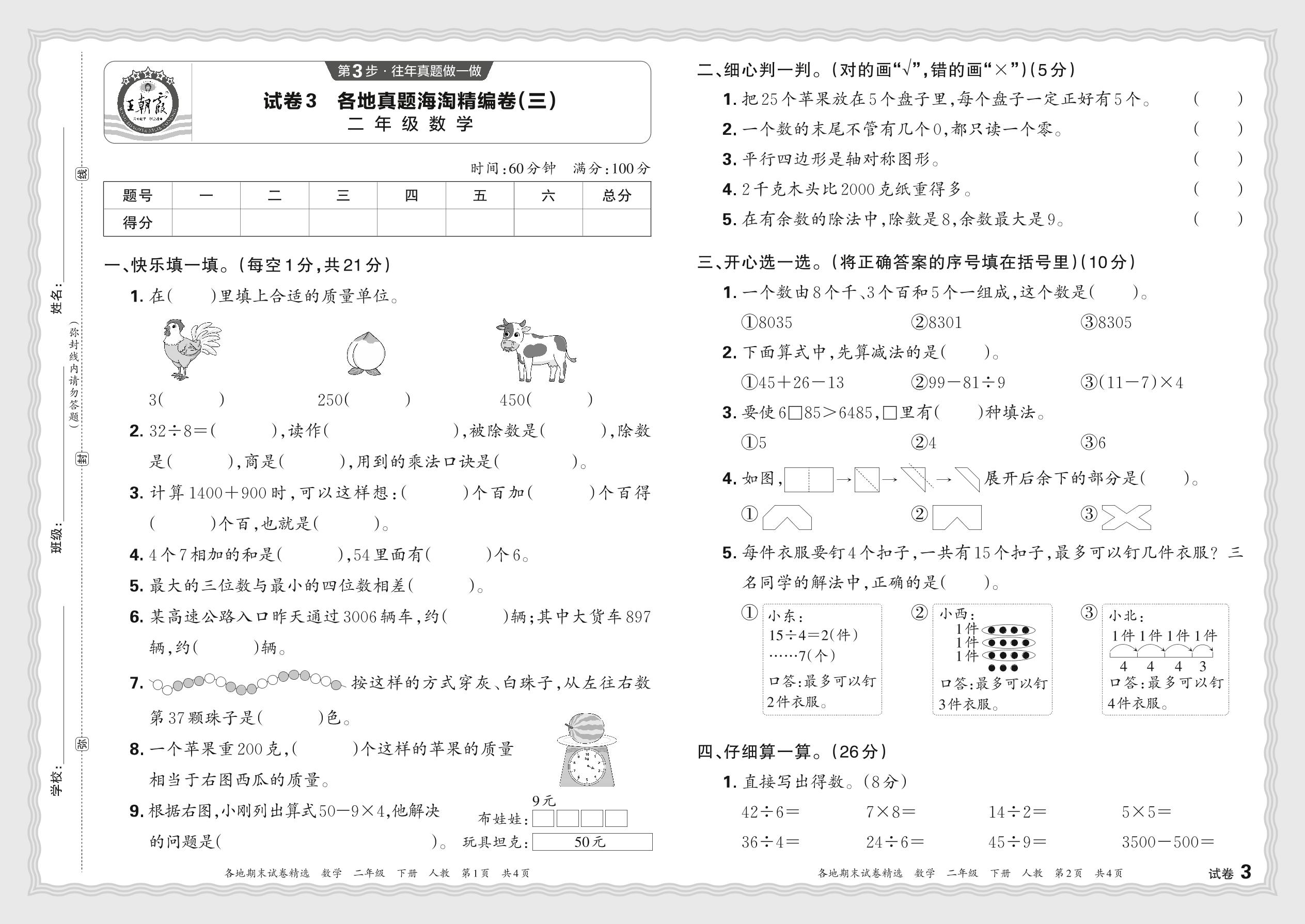2024春下册二年级数学人教版 各地真题海淘精编卷(三)JX