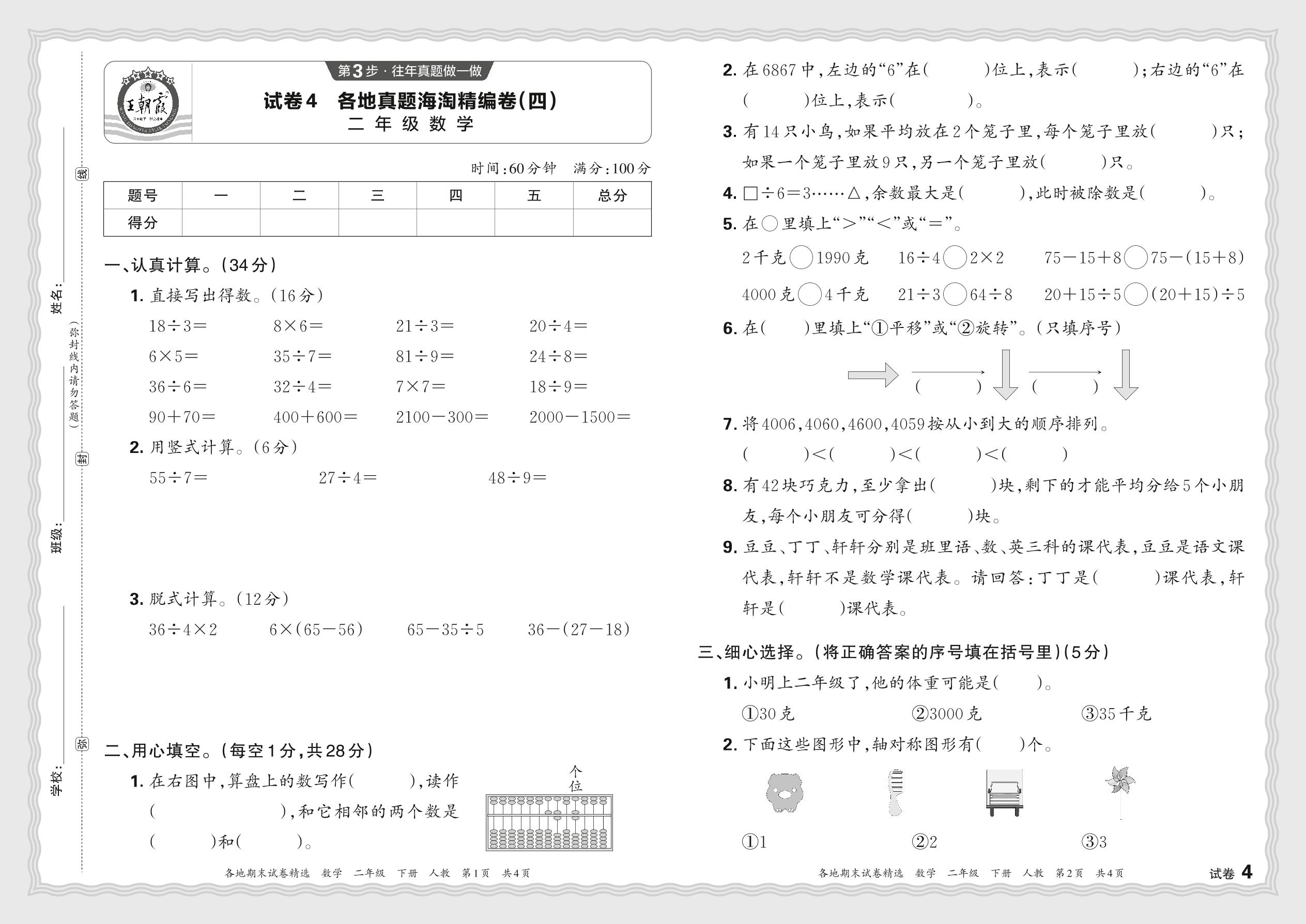 2024春下册二年级数学人教版 各地真题海淘精编卷(四)JX