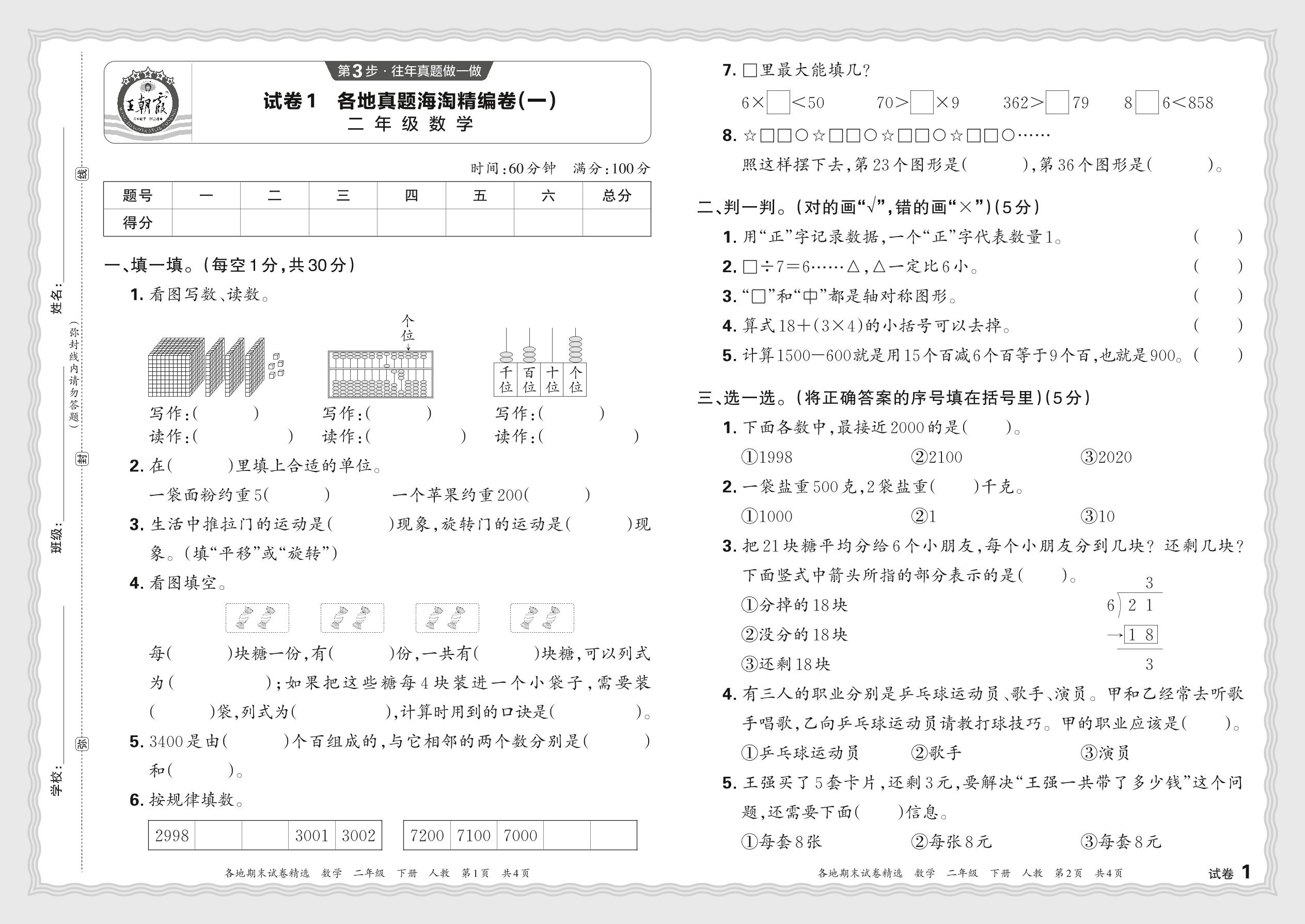 2024春下册二年级数学人教版 各地真题海淘精编卷(一)JX