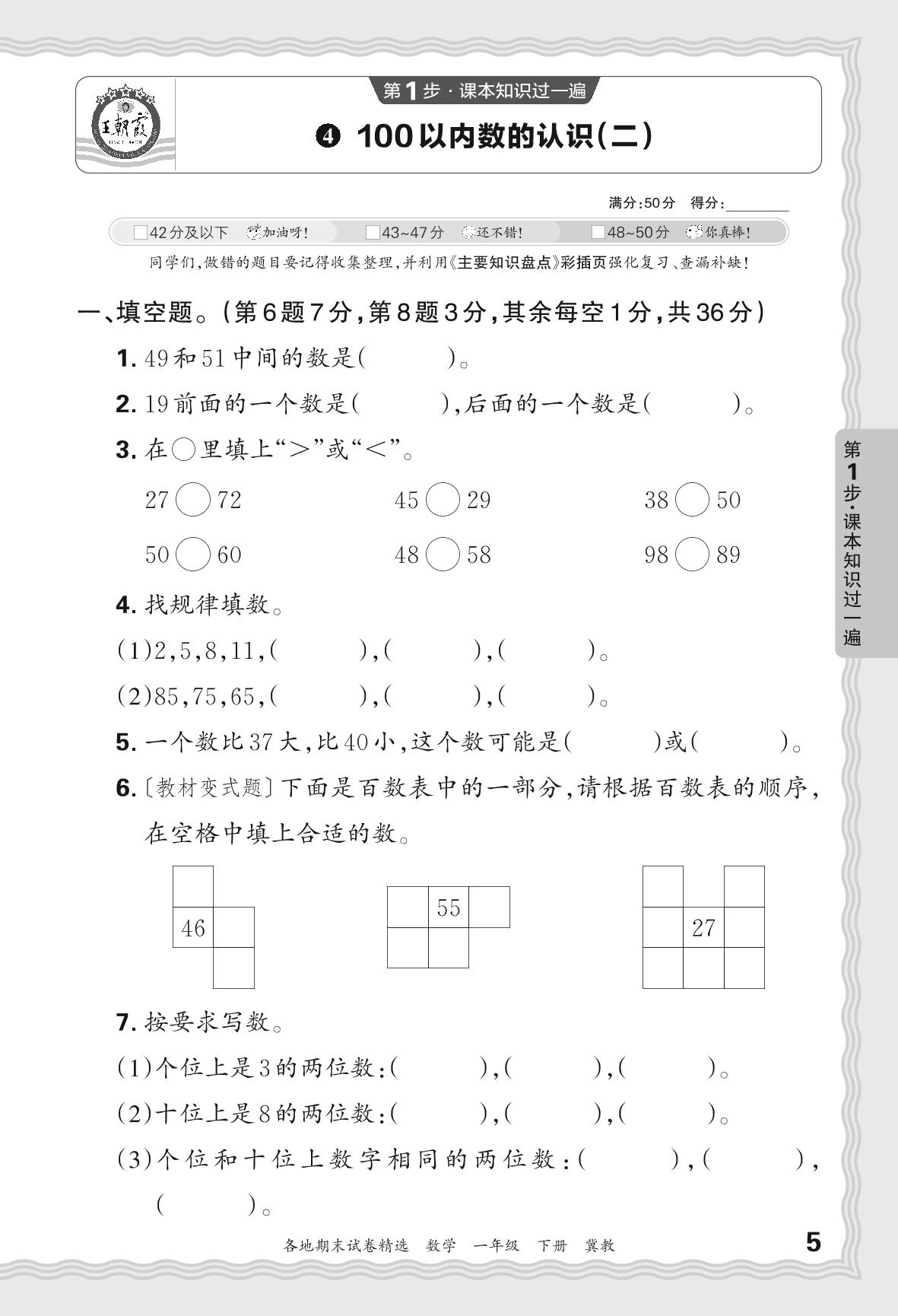 2024春下册一年级数学冀教版 期末过课本JX版·100以内数的认识(二)【4】