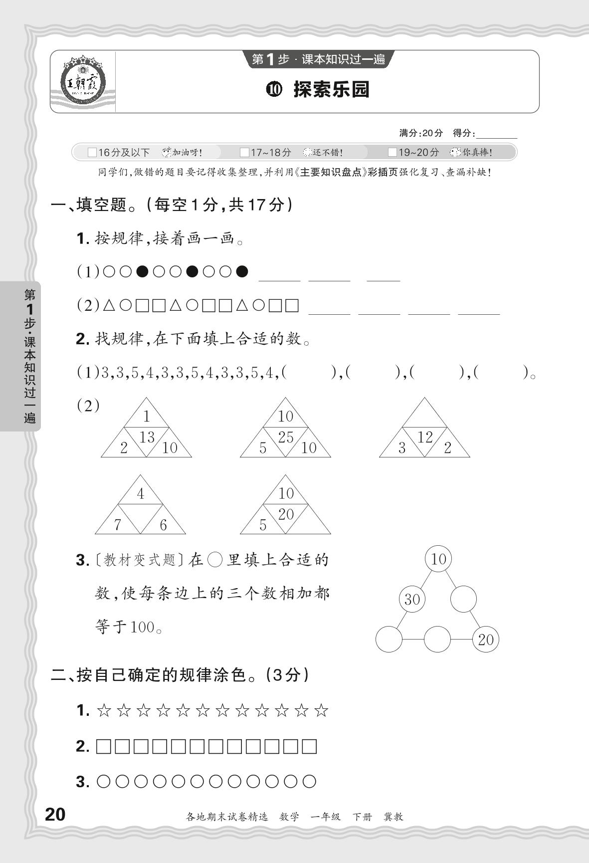 2024春下册一年级数学冀教版 期末过课本JX版·探索乐园【10】