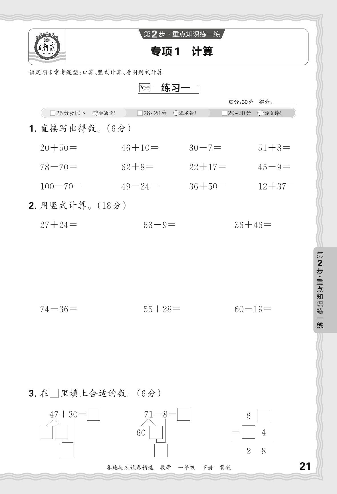 2024春下册一年级数学冀教版 期末专项卷JX版·计算【1】