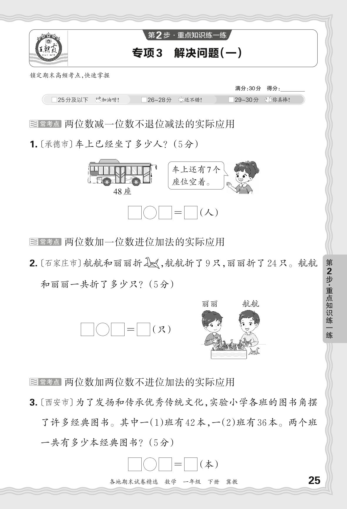 2024春下册一年级数学冀教版 期末专项卷JX版·解决问题(一)【3】