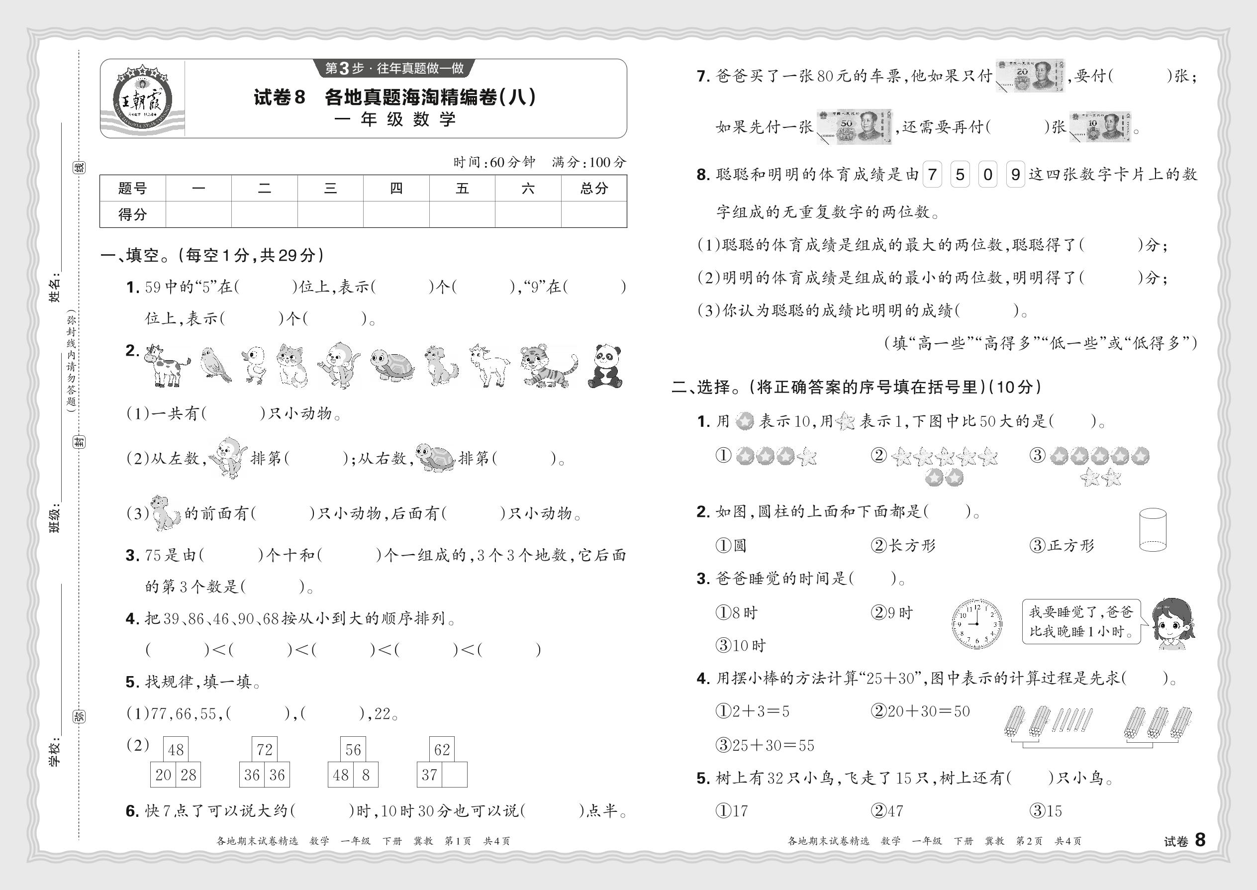 2024春下册一年级数学冀教版 各地真题海淘精编卷(八)JX