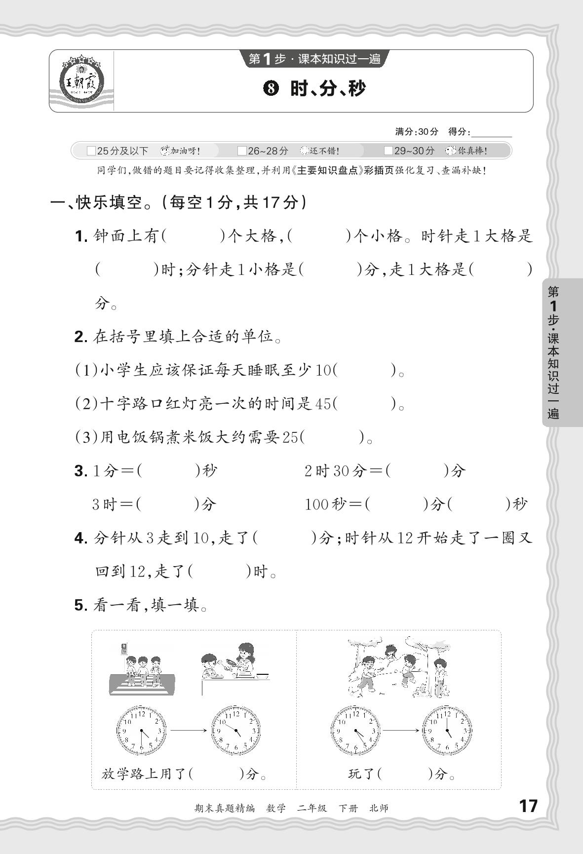 2024春下册二年级数学北师版 期末过课本郑州版·时、分、秒【8】