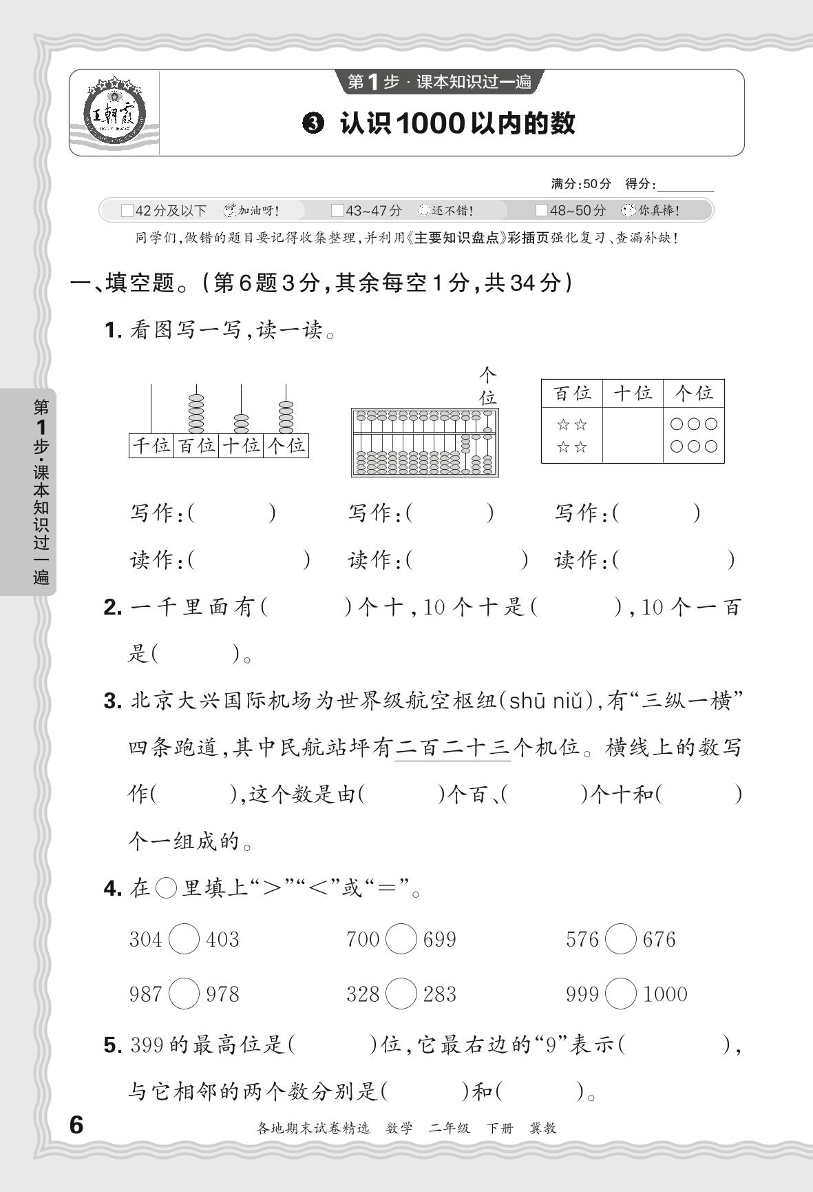 2024春下册二年级数学冀教版 期末过课本JX版·认识100以内的数【3】