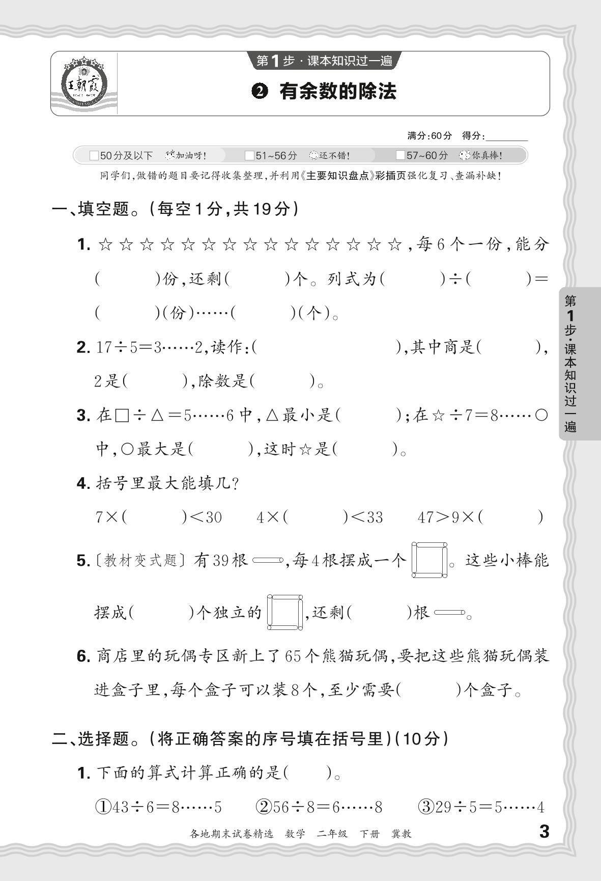 2024春下册二年级数学冀教版 期末过课本JX版·有余数的除法【2】