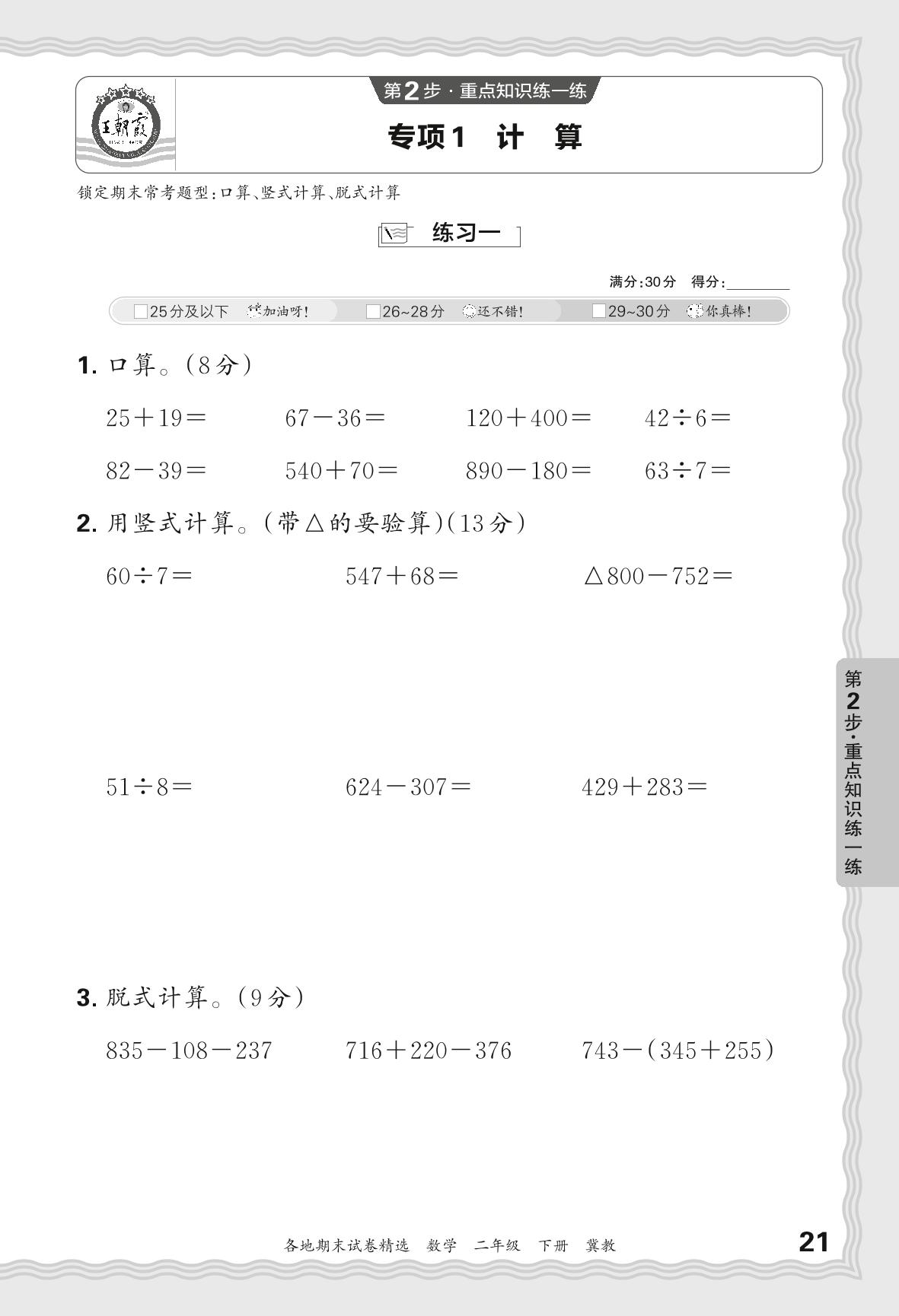 2024春下册二年级数学冀教版 期末专项卷JX版·计算【1】