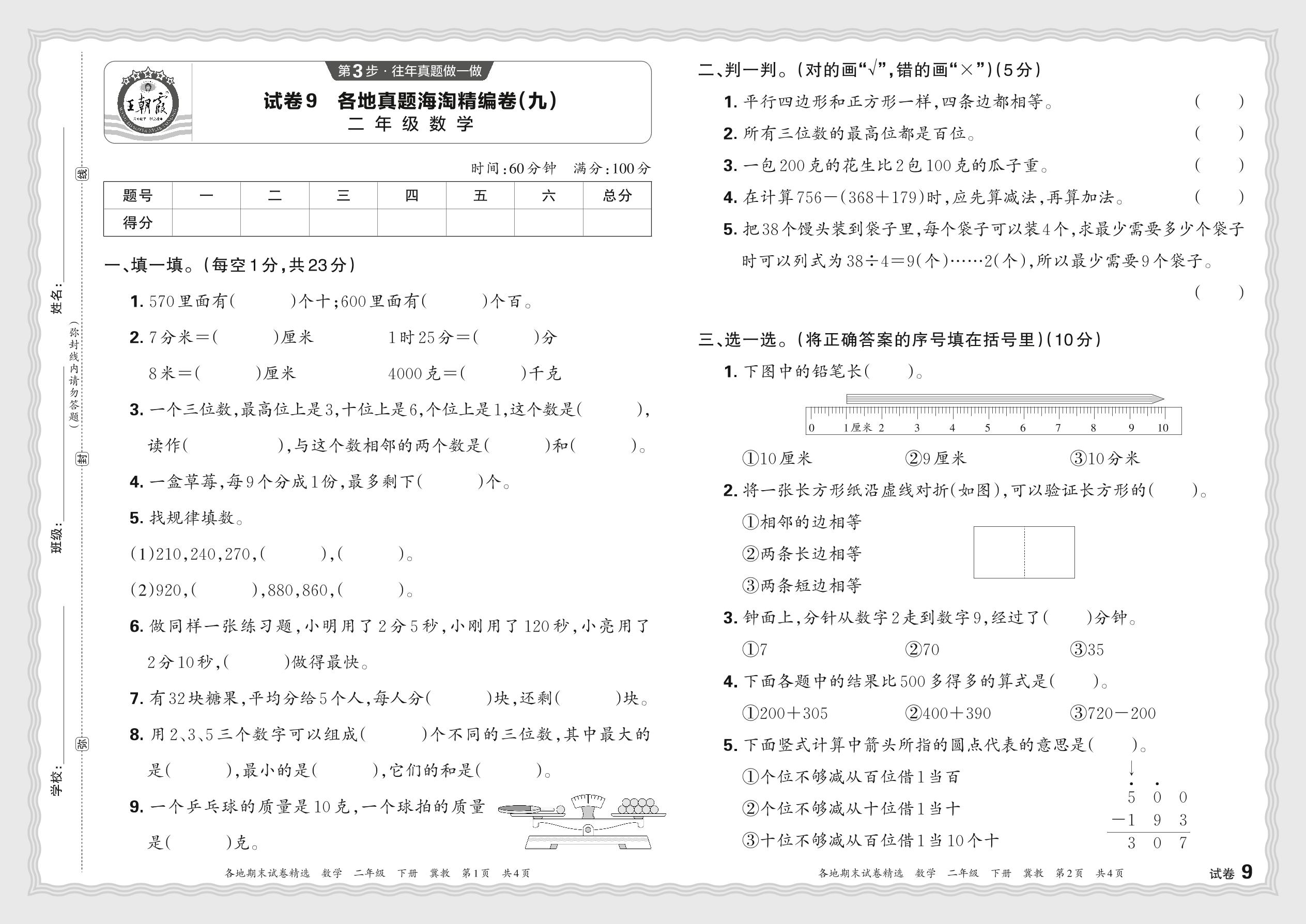 2024春下册二年级数学冀教版 各地真题海淘精编卷(九)JX