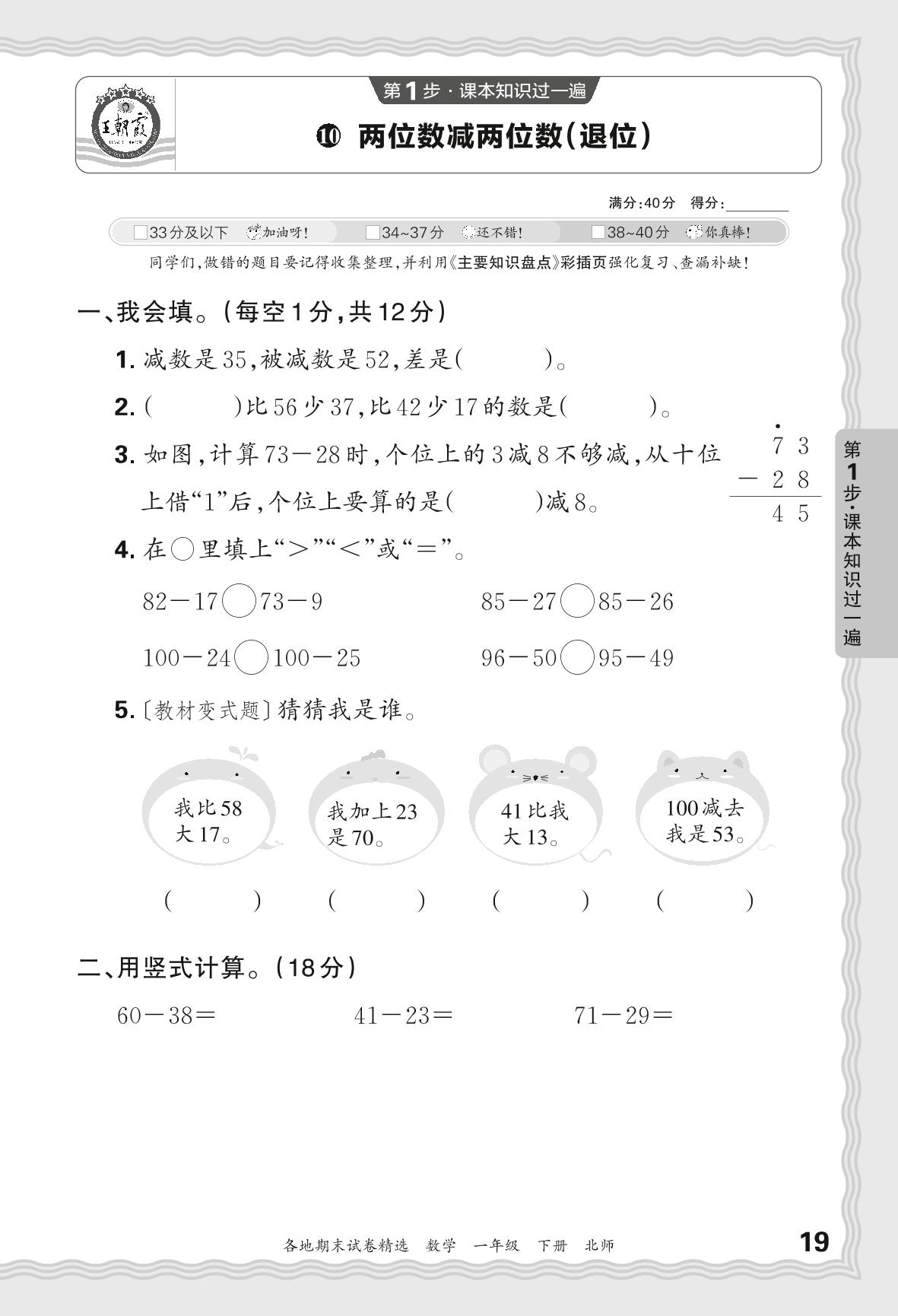 2024春下册一年级数学北师版 期末过课本JX版·两位数减两位数(退位)【10】