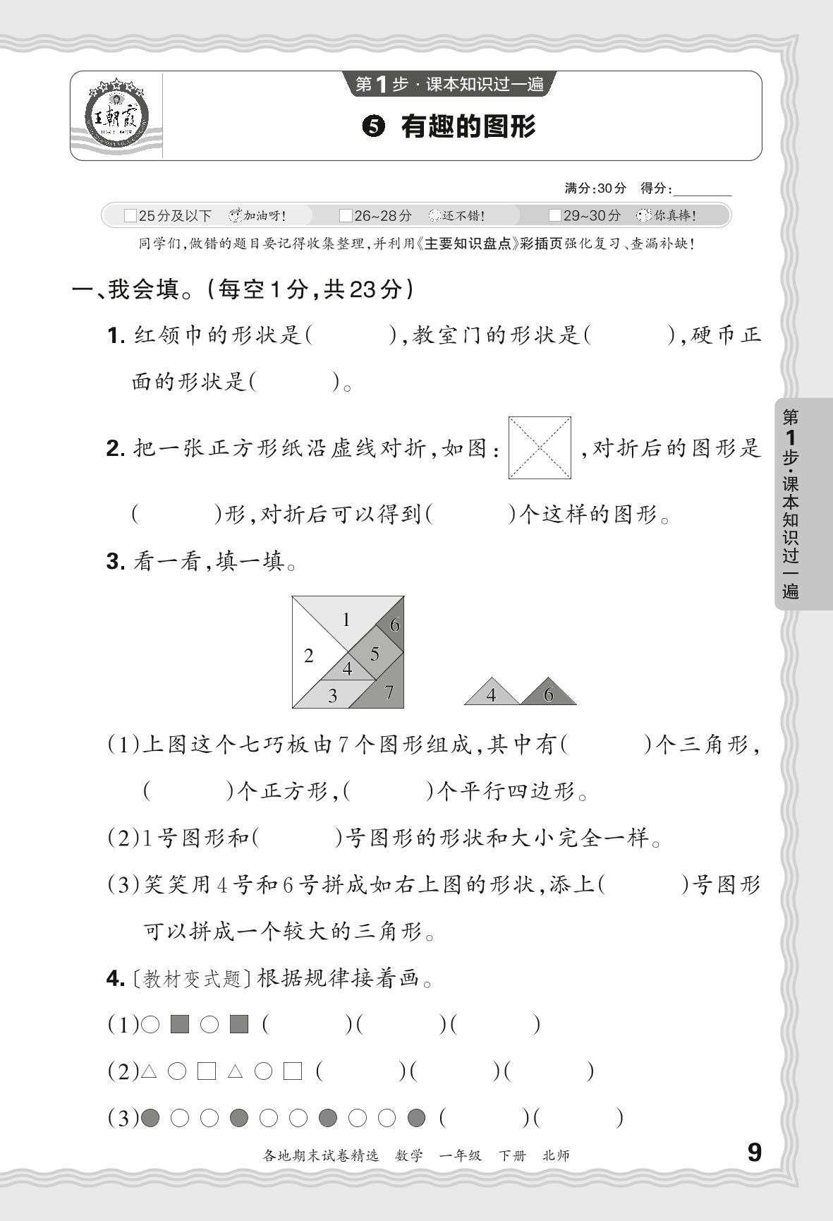 2024春下册一年级数学北师版 期末过课本JX版·有趣的图形【5】