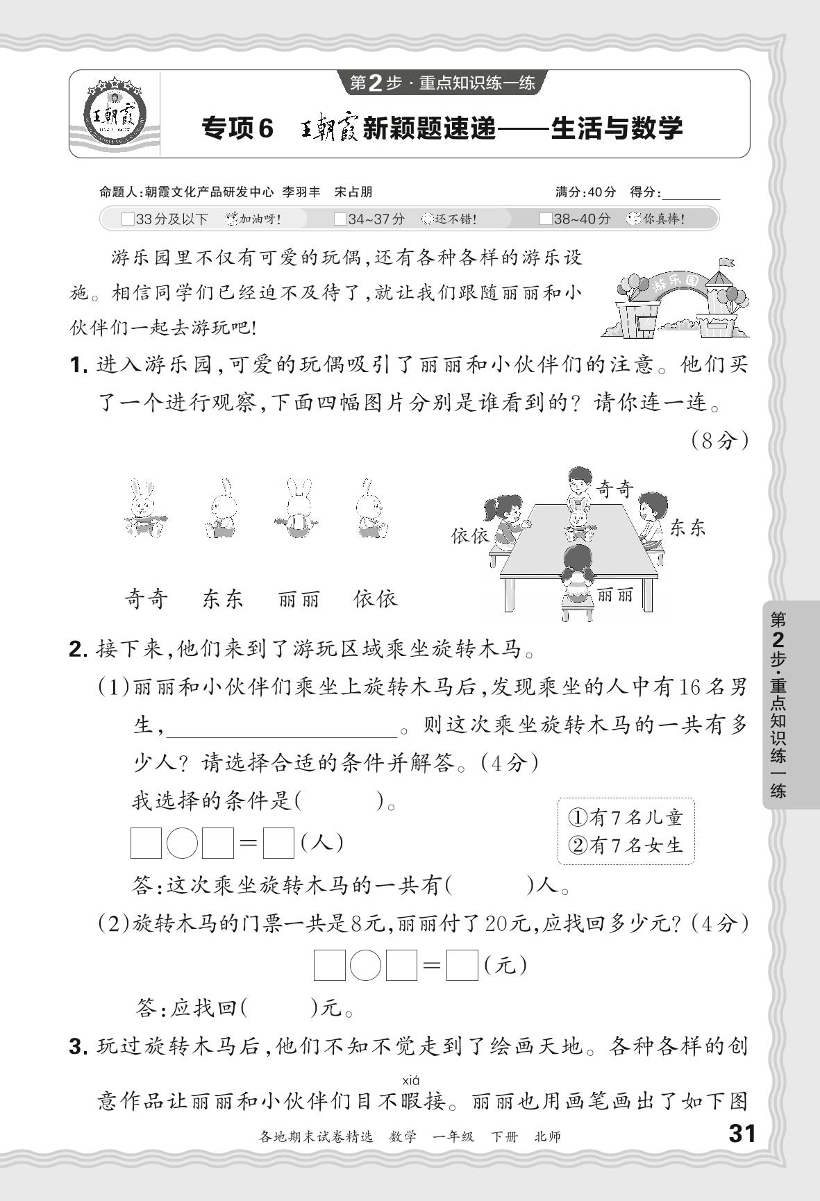 2024春下册一年级数学北师版 期末专项卷JX版·王朝霞新颖题速递——生活与数学【6】