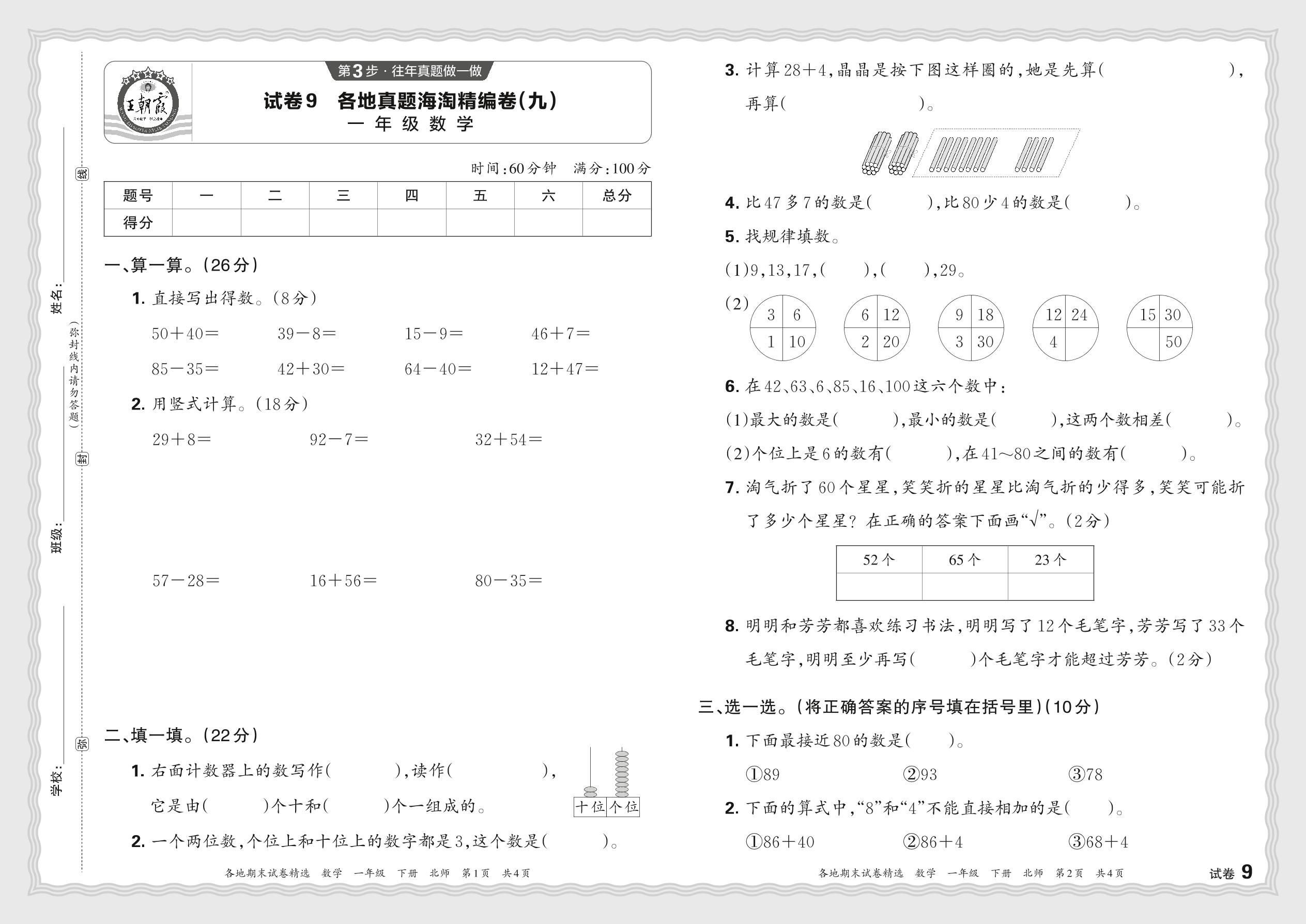 2024春下册一年级数学北师版 各地真题海淘精编卷(九)JX