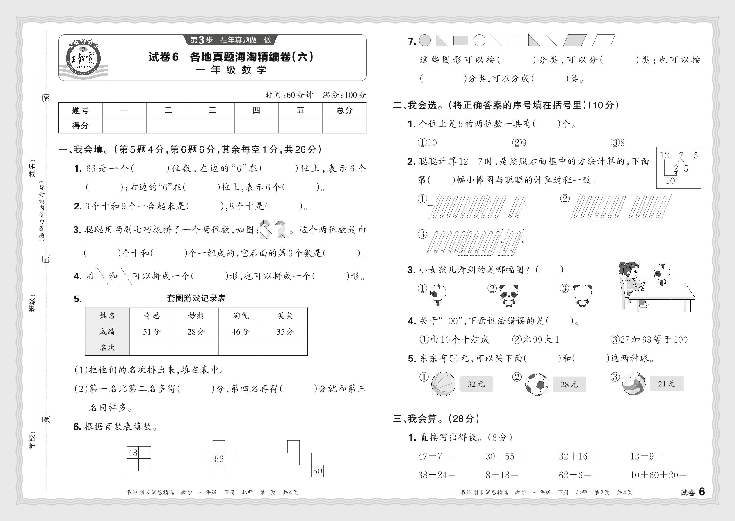 2024春下册一年级数学北师版 各地真题海淘精编卷(六)JX