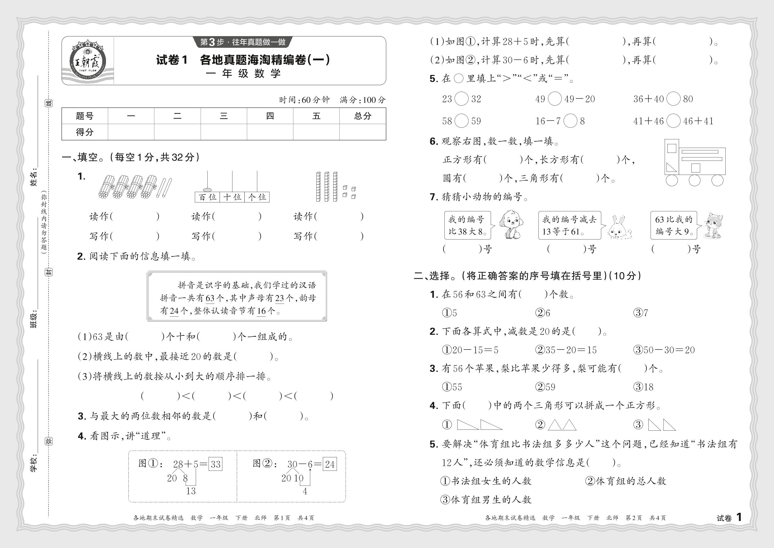 2024春下册一年级数学北师版 各地真题海淘精编卷(一)JX