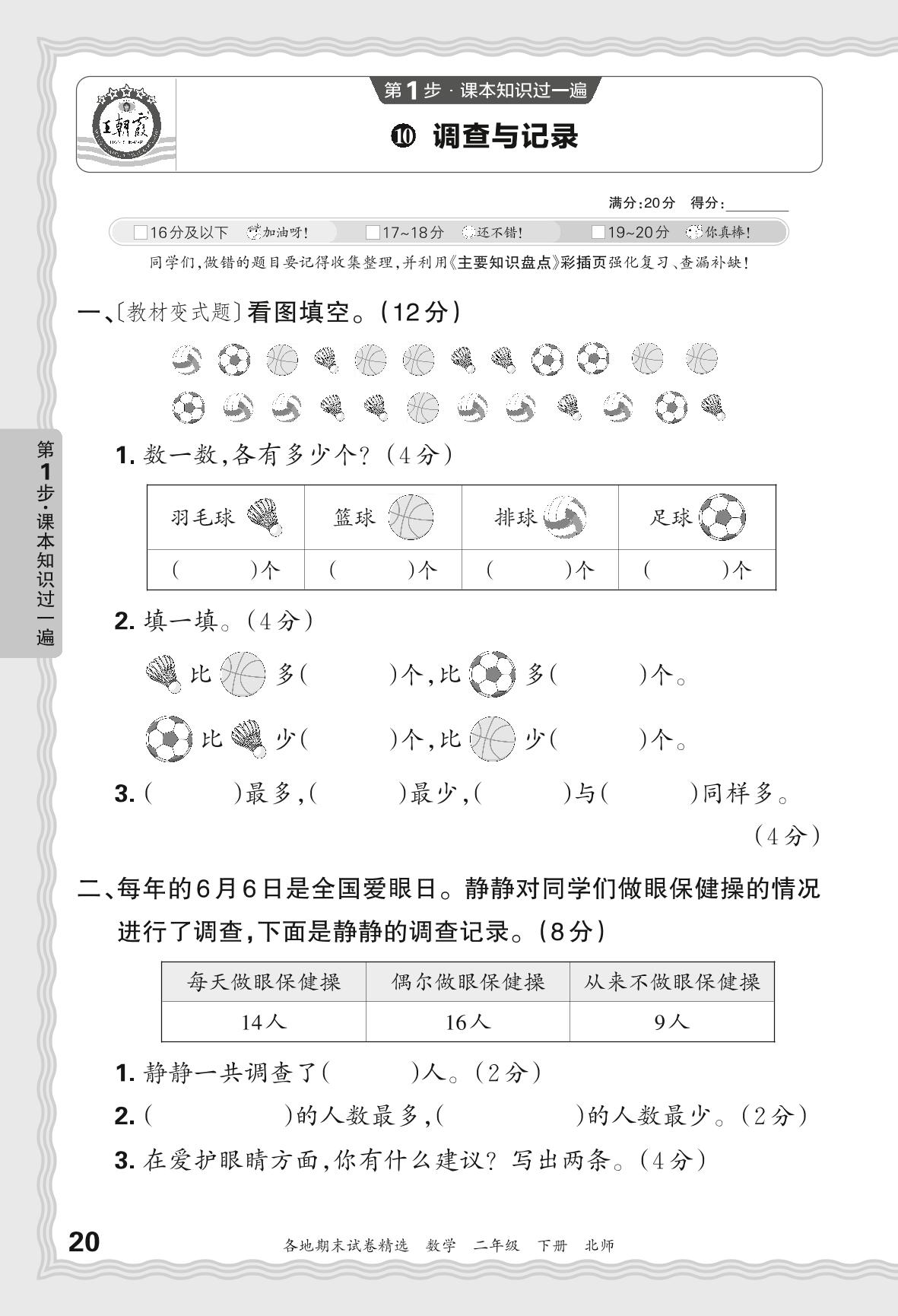 2024春下册二年级数学北师版 期末过课本JX版·调查与记录【10】