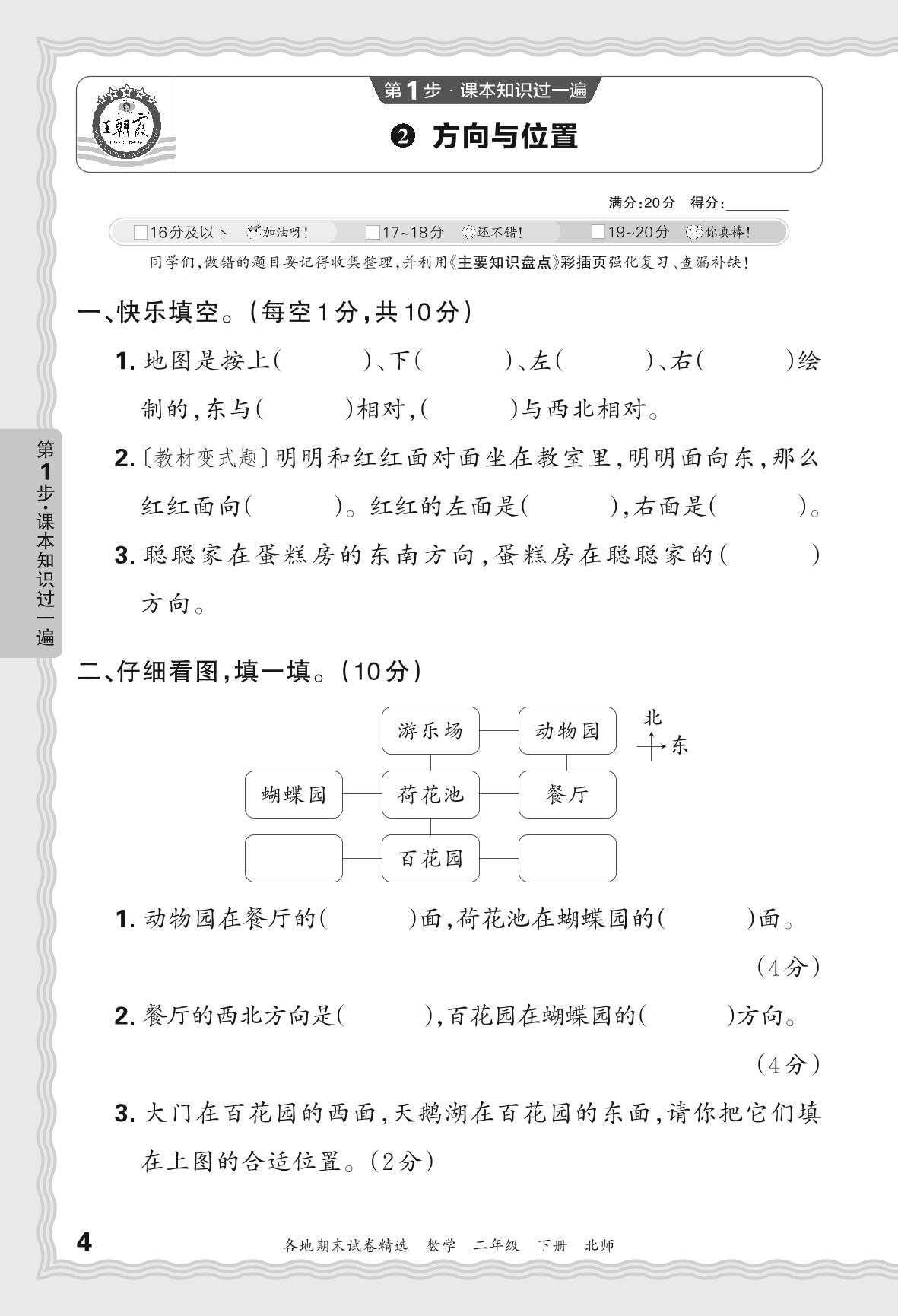 2024春下册二年级数学北师版 期末过课本JX版·方向与位置【2】